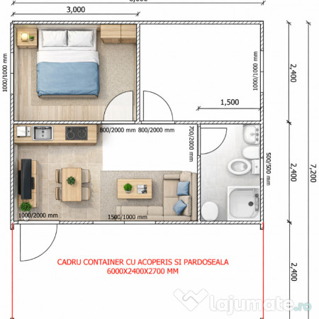 STRUCTURĂ: structură metalică zincată 3 mm, planșeu 400 kg/mp, acoperiș 250 kg/mp