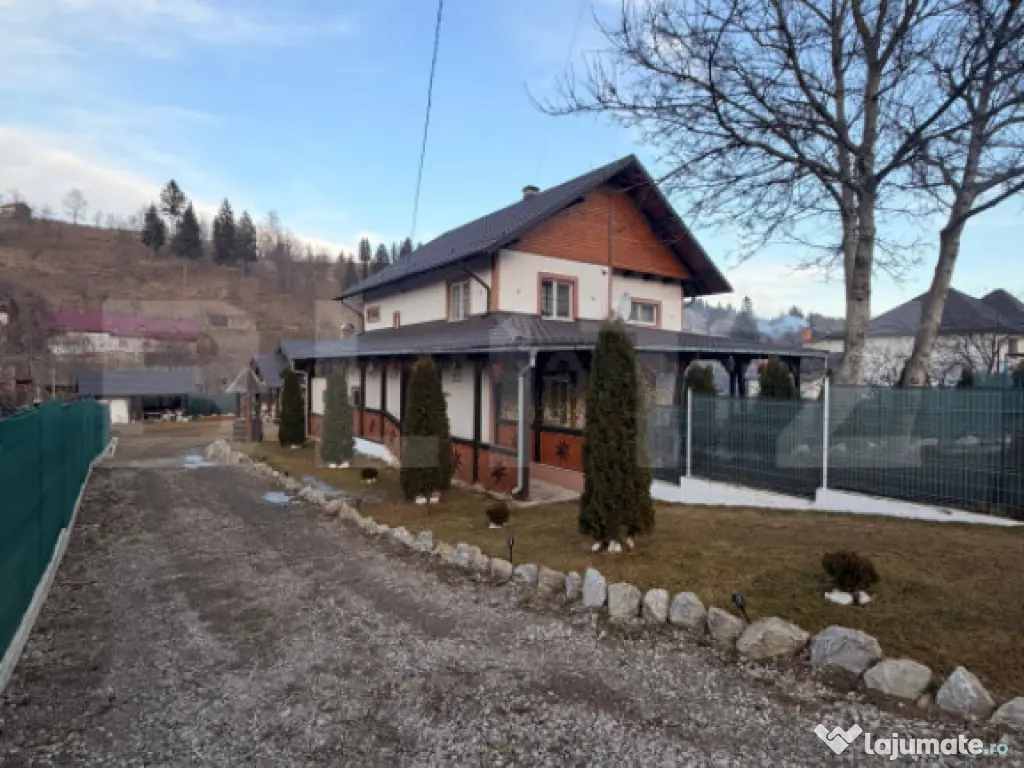 Casă multifuncțională în Sadova – Inima Bucovinei Există locuri care nu sunt doar proprietăți, ci experiențe de viață. Această casă din Sadova, situată foarte aproape de celebra Panorama Bucovinei, îți oferă exact acel sentiment rar de liniște, libertate și conexiune cu natura. Imaginează-ți diminețile în care deschizi geamul și vezi dealurile Bucovinei scăldate în lumină, iar seara te relaxezi pe terasa generoasă de 36 mp, admirând un apus care pare pictat. Proprietatea este amplasată pe o stradă asfaltată, într-o zonă cu priveliște superbă, perfectă atât pentru locuit, cât și pentru o investiție turistică. Casa este construită din lemn, cu o suprafață utilă de 100 mp, amplasată pe un teren generos de 20 ari, oferind spațiu, intimitate și multiple posibilități de utilizare. Compartimentare inteligentă: Parter • living primitor • dormitor • baie • beci • spațiu care a funcționat anterior ca bar de zi, cu intrare separată – ideal pentru activitate comercială, cabinet, atelier sau spațiu de relaxare Etaj • 2 dormitoare luminoase • baie • living open-space cu bucătărie • hol tip dressing În plus, proprietatea dispune de o terasă închisă lipită de casă, utilizată în prezent ca foișor / sală de sport, un spațiu versatil pentru relaxare sau activități recreative. Dotări și utilități: • centrală pe lemne • sobe tradiționale • două fântâni proprii • fosă septică • acoperiș Lindab • uși și geamuri PVC • izolație exterioară de 8 cm Această proprietate este ideală pentru: • locuință permanentă într-un cadru natural spectaculos • pensiune, casă de vacanță sau business turistic • activități comerciale sau recreative Un loc unde liniștea Bucovinei, spațiul generos și versatilitatea proprietății creează oportunitatea perfectă pentru un nou început. Te invităm să descoperi personal farmecul acestui loc. Cod ofertă / ID BLITZ: P166356 Id intern: P166356 Număr niveluri imobil: 1 Număr Băi: 2 Nr. locuri parcare: 5 Curent Apă Canalizare