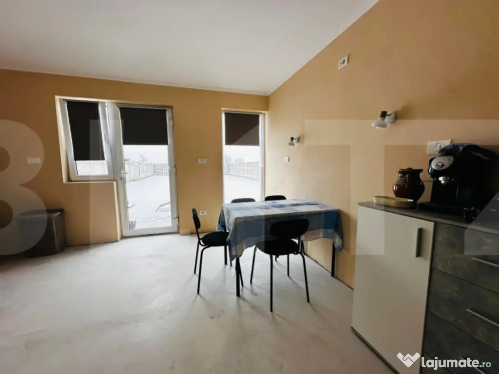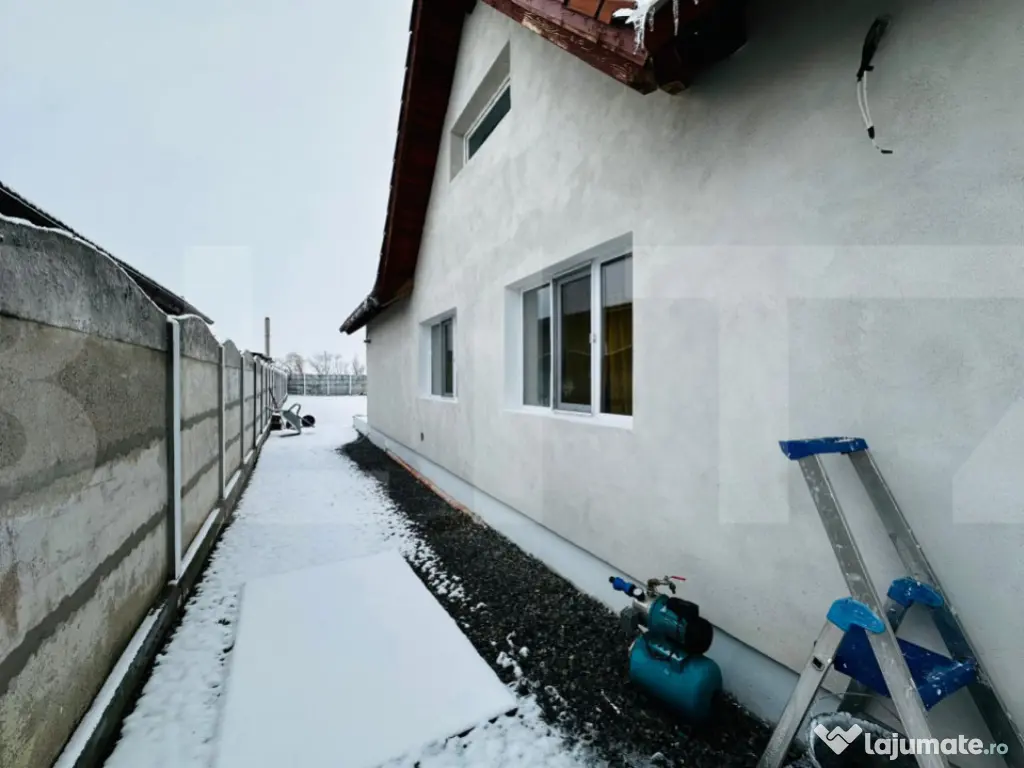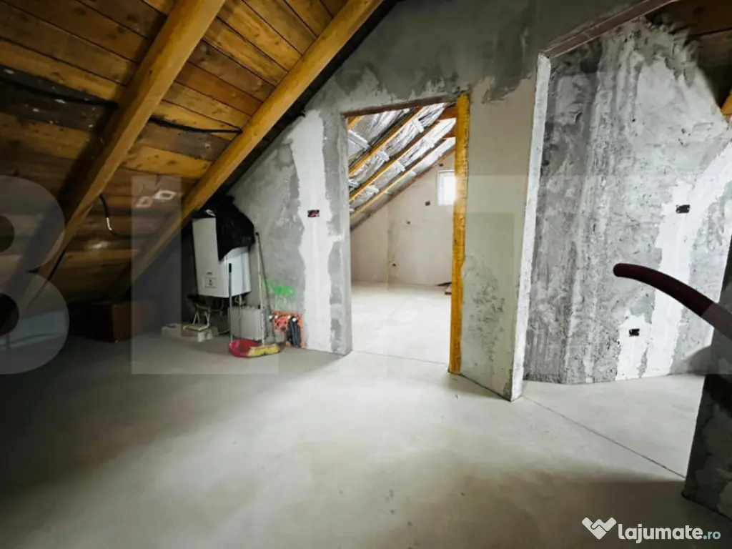 Blitz va propune spre vanzare o casa noua, situata in Arad, cartierul San Paolo, intr-o zona rezidentiala nou construita, linistita si in plina dezvoltare. Proprietatea este partial finisata, oferind viitorilor proprietari libertatea de a-si personaliza spatiul exact asa cum isi doresc. Casa este dispusa pe parter si mansarda. Parterul este functional si aproape complet finisat si cuprinde: • living spatios si luminos • bucatarie • 2 dormitoare • baie • hol si terasa Cele doua dormitoare si baia sunt finalizate, unul dintre dormitoare fiind deja mobilat. Livingul si bucataria sunt la lavabil, necesitand doar montarea pardoselii. Mansarda este la gri si include: • 2 dormitoare • baie • camera tehnica Imobilul este tencuit atat la interior, cat si la exterior si beneficiaza de izolatie, pentru un confort termic optim. Dotari si avantaje: • incalzire in pardoseala atat la parter, cat si la mansarda • pompa de caldura • centrala electrica • horn pregatit pentru semineu • curent trifazic • gard din beton cu porti • geamuri termopan • gazon amenajat • fantana forata Aceasta proprietate este alegerea ideala pentru cei care isi doresc o casa noua in Arad, intr-un cartier modern – San Paolo, cu finisaje de baza deja realizate si libertate totala de amenajare. Pentru mai multe detalii sau pentru programarea unei vizionari, va stam la dispozitie. Cod ofertă / ID BLITZ: P161154 Id intern: P161154 Număr Băi: 2 Curent Apă Canalizare