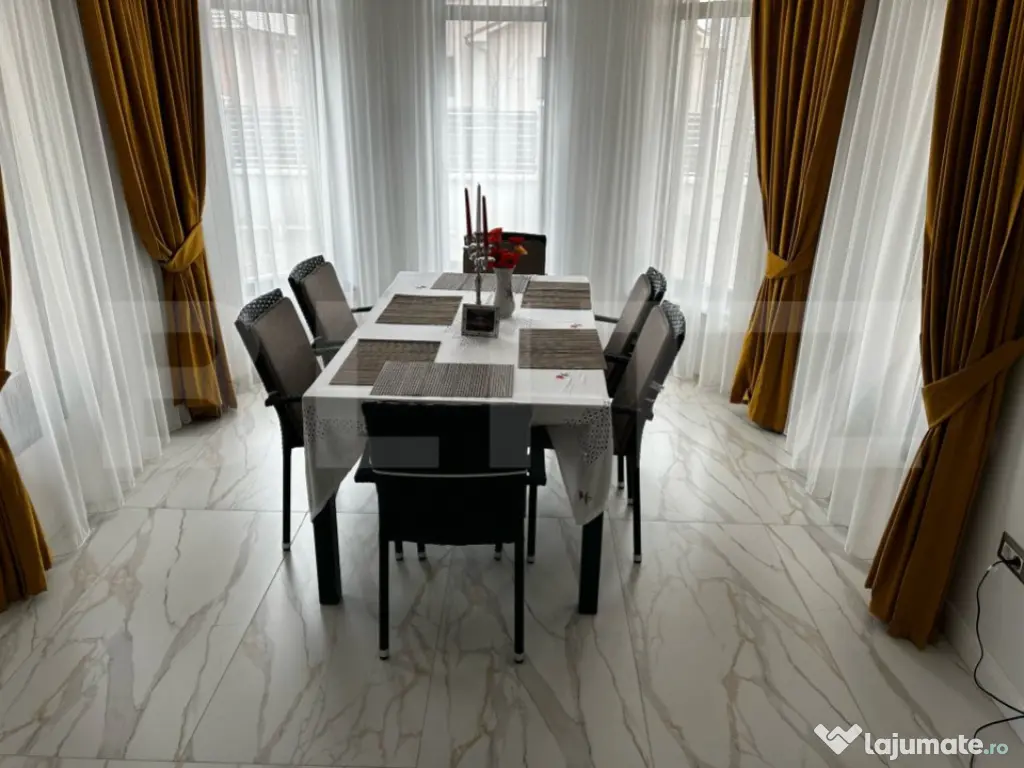 Va propunem spre vanzare casa cu design deosebit construita in anul 2024. Aceasta proprietate este amplasata pe un teren generos de 570 mp si este dispusa pe plan parter si etaj. Casa se vinde finisata si mobilata la interior iar exterior semifinisata. Aceasta dispune de geamuri și ușile sunt marca Gealan, uși de interior marca porta doors, incălzirea este realizata in pardoseala la ambele niveluri, pompa de caldura marca Mitsubishi cu dublă utilitate iarna încălzire și vară răcire cu termostate, balcoane hidroizolate și îmbrăcate cu gresie și marmură. Construcția casei este din BCA, sistemul de acoperiș este Creaton cu garanție 50 ani. Burlanele, doliile si jgheaburile marca Lindab. Izolație exterioară cu polistiren de 15 cm. Tavanul etajului este podit cu scândura și spuma de 15-20 cm. Suprafața desfășurată este de 346 mp incluzând terasele, balcoanele si scările de acces. Casa are 143 mp utili la parter plus terasa de 25mp si 146 mp la etaj. Terenul are 575 mp. Parterul este compus dintr-o camera separată (birou), camera tehnica, o baie mare, o sufragerie spațioasa cu acces la o terasa exterioara, o bucătărie cu acces la zona de luat masa si la sufragerie prin uși culisante de sticlă securizată, dar si cu acces la o alta terasa exterioara, un mic hol de acces la spatele casei si scările de acces la etaj. Etajul este compus din 3 dormitoare, unul dintre dormitoare are o baie proprie, doua dresinguri si un balcon mare. Celelalte doua dormitoare cu balcon propriu exterior având intre ele un hol cu o deschidere interioară de tip balcon. La etaj se mai găsește încă o baie mare și un dresing. Toate camerele de la etaj au balcon. Scările de acces la etaj sunt din marmură iar balustradele atât la scări cat și balconul interior sunt confecționate din sticlă securizată, la etaj având un iluminator natural. Tot mobilierul din casă este făcut la comandă și de înaltă calitate (exclus canapele și paturi). Toată aparatura electrocasnică este de înaltă calitate (AEG+Haier+Samsung) cu garanție extinsă. Curtea împrejmuită cu gard din beton și panouri din aluminiu și ușă auto automatizată. Curtea are trotuare, spațiul verde cu instalație de irigare automatizată dar și o căsuță spatiu de depozitare.Se poate pune la dispoziție toata documentația aferentă construcției cu dovada achiziției tuturor materialelor si a servciilor executate plus proiectul cu autorizația de construcție. Terenul are dublu front stradal din care unul chiar la strada principala. Pentru alte informatii suplimentre sau vizionari va rugam contactati Blitz Imobiliare. Cod ofertă / ID BLITZ: P143651 Id intern: P143651 Număr niveluri imobil: 1 Număr Băi: 3 Nr. locuri parcare: 2 Curent Apă Canalizare