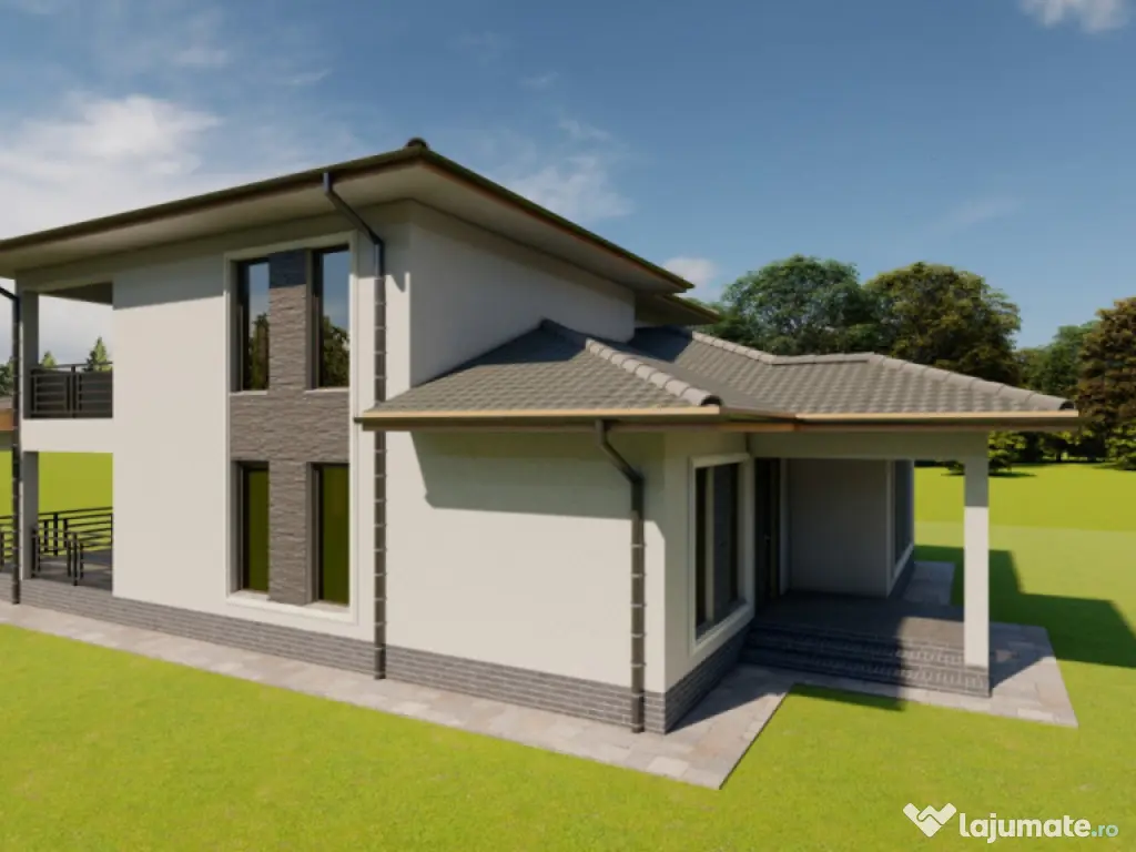Blitz va prezinta o casă nouă, modernă, P + 1, cu o suprafață utilă de 200 mp și 2 terase însumând 60 mp, ideală pentru o familie care își dorește confort, calitate și funcționalitate. Proprietatea va fi realizată din cărămidă Cemacom M, termosistem cu polistiren de 10 cm, acoperiș din țiglă Bramak și geamuri tripan Rehau, oferind o excelentă eficiență termică și fonică. ???? Compartimentare practică și echilibrată: 3 dormitoare luminoase; 2 băi complet echipate; living generos și bucătărie (separate sau open-space, în funcție de preferința cumpărătorului); hol; cameră tehnică; 2 terase însumând 60 mp – perfecte pentru relaxare. ???? Dotări și finisaje: Încălzire în pardoseală; Centrală termică pe gaz; Finisaje de înaltă calitate, moderne și durabile; Curte complet betonată și amenajată cu gazon; Garduri finalizate și drum de acces de 7 m lățime. Casa se vinde la cheie, complet finisată, iar în funcție de momentul achiziției, finisajele interioare se pot personaliza după preferințele cumpărătorului (culori, gresie, parchet, faianță etc.). Această locuință îmbină perfect designul modern, materialele premium și confortul zilnic. Termenul de finalizare este noiembrie 2026. Cod ofertă / ID BLITZ: P157707 Id intern: P157707 Număr niveluri imobil: 1 Număr Băi: 2 Curent Apă Canalizare Gaz