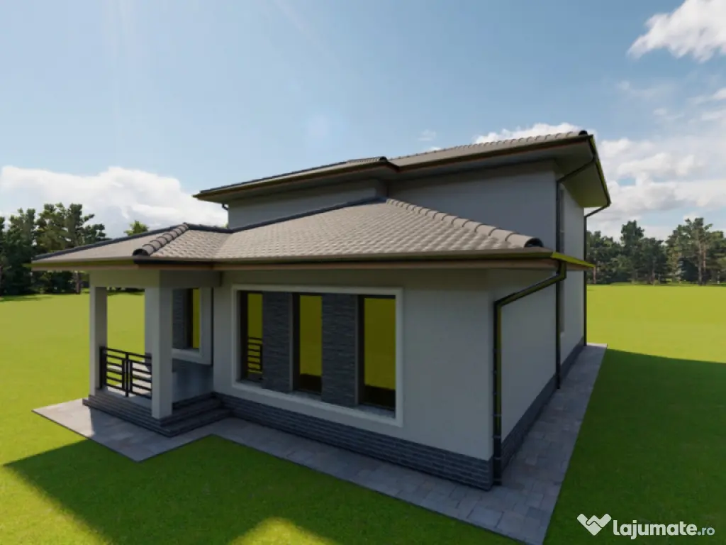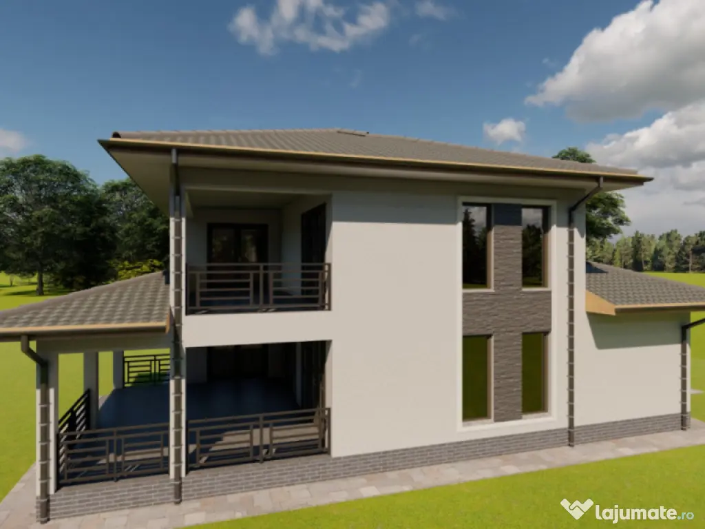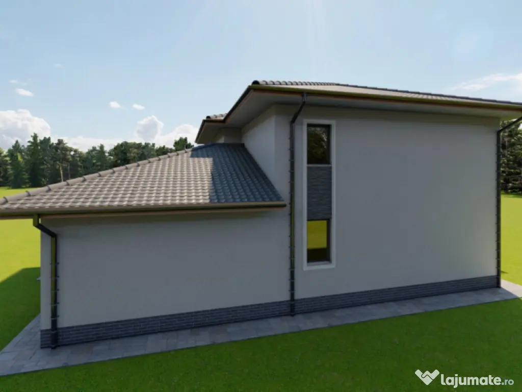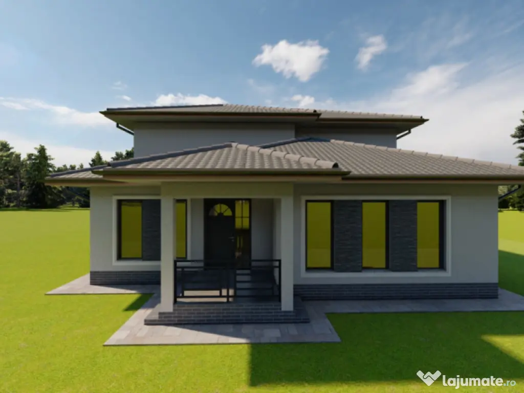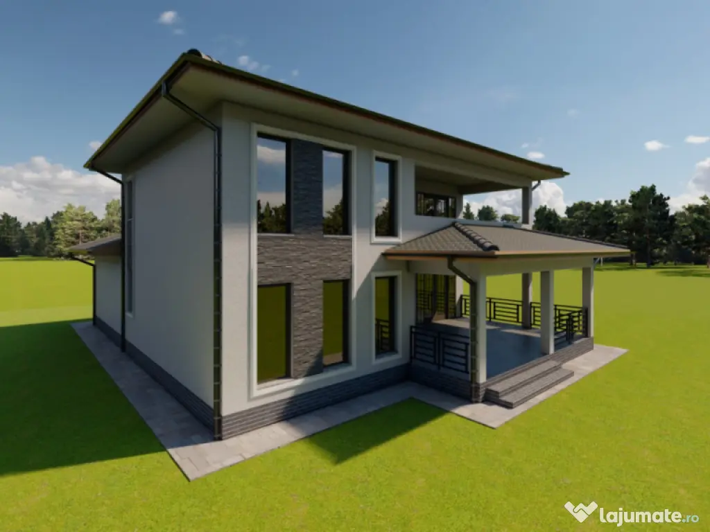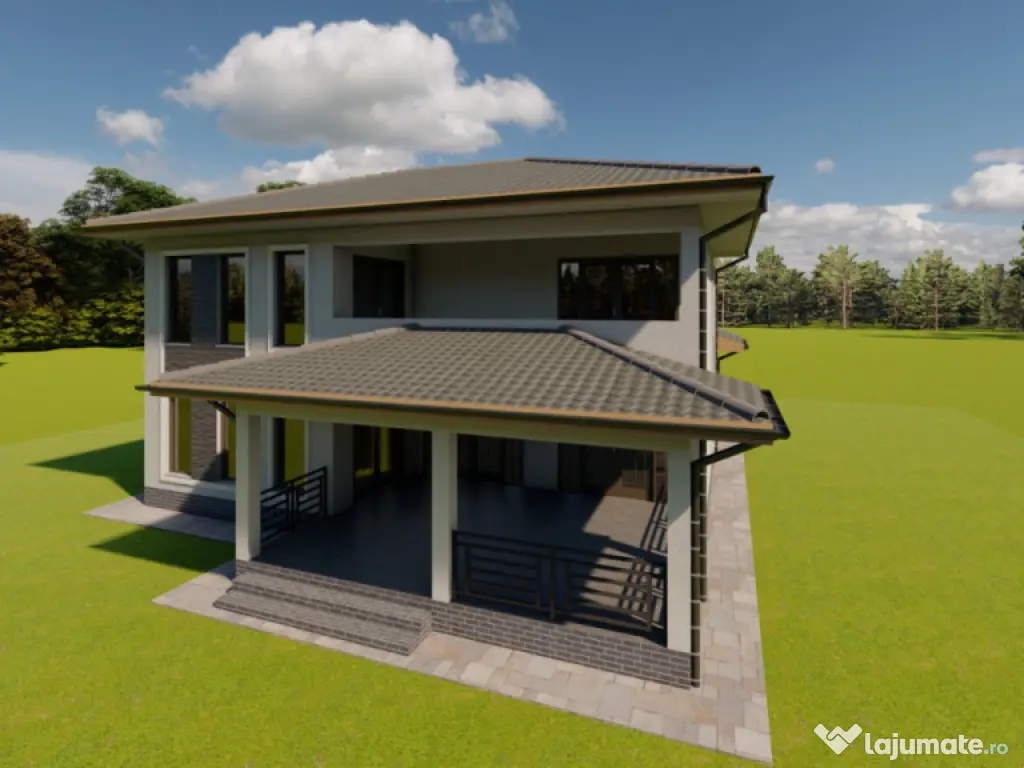 Blitz va prezinta o casă nouă, modernă, P + 1, cu o suprafață utilă de 200 mp și 2 terase însumând 60 mp, ideală pentru o familie care își dorește confort, calitate și funcționalitate. Proprietatea va fi realizată din cărămidă Cemacom M, termosistem cu polistiren de 10 cm, acoperiș din țiglă Bramak și geamuri tripan Rehau, oferind o excelentă eficiență termică și fonică. ???? Compartimentare practică și echilibrată: 3 dormitoare luminoase; 2 băi complet echipate; living generos și bucătărie (separate sau open-space, în funcție de preferința cumpărătorului); hol; cameră tehnică; 2 terase însumând 60 mp – perfecte pentru relaxare. ???? Dotări și finisaje: Încălzire în pardoseală; Centrală termică pe gaz; Finisaje de înaltă calitate, moderne și durabile; Curte complet betonată și amenajată cu gazon; Garduri finalizate și drum de acces de 7 m lățime. Casa se vinde la cheie, complet finisată, iar în funcție de momentul achiziției, finisajele interioare se pot personaliza după preferințele cumpărătorului (culori, gresie, parchet, faianță etc.). Această locuință îmbină perfect designul modern, materialele premium și confortul zilnic. Termenul de finalizare este noiembrie 2026.