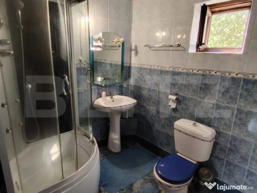 Blitz vă propune spre vânzare o casă în zona centrală a Craiovei, zona de case, cu o curte de 181 mp, amenajata cu pavele. În curte există un garaj, cu capacitatea de a parca o mașină, având poarta acționată prin telecomanda, iar la demisolul garajului, există un beci care se poate accesa din partea de curte. Suprafata garaj = 17.36 mp Sub garaj este beciul, in suprafata totala de 7.45 mp. Proprietatea, in suprafata totala de 186.39 mp, dispune de 3 niveluri, cu următoarea compartimentare: - la parter se regăsește bucătăria, cu intrare direct din terasă, dar si din holul casei, un birou, living foarte spatios si o baie foarte mare, cu geam in exterior; SU parter = 65.72 mp - la etajul 1 se regasesc 3 dormitoare mari cu doua balcoane si o baie ; SU = 61.75 mp - la mansarda este un alt balcon, iar la interior este compartimentată, însă nu este complet finalizata; se poate recompartimenta si amenaja in functie de nevoile viitorului proprietar; SU mansardă = 58.92 mp Casa este racordată la toate utilitățile, are centrală pe gaze, aer conditionat, ferestre din termopan si rulouri exterioare. Pentru mai multe detalii, va asteptam la vizionare. Cod ofertă / ID BLITZ: P152973 Id intern: P152973 Număr Băi: 2 Curent Apă Canalizare Gaz Climă