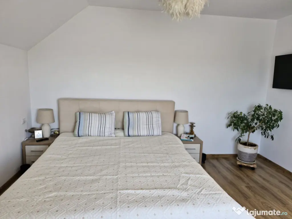 BLITZ vă propune spre vanzare o proprietate compusa dintr-o casă construită în regim P+1 și un teren de 1024 mp, situată în Malu Mare. Imobilul a fost construit în anul 2018 din materiale premium, dispunand de o suprafață construită de 240 mp, o suprafață utilă de 180 mp, realizata din cadre de beton, compartimentata cu caramida poroterm,izolatie din polistiren de 10 cm, acoperisul este realizat din tabla BILKA ,iar usa de la intrare este din tâmplărie PVC si tocaria este din termopan profil PVC Win. Proprietatea este prevazuta in partea din spate cu o terasa generoasa cu o suprafata de 40 mp, foarte frumos amenajata, destinata relaxarii si o camera tehnica. Proprietatea este compartimentata dupa cum urmeaza: la parter regasim un living spatios, bucatarie, baie, iar la etaj regasim 3 dormitoare (unul dintre acestea fiind transformat in birou de lucru) , dressing si baie, si de asemenea si un balcon cu iesire din dormitorul principal, de asemenea scara interioara si usile interioare sunt realizate din lemn masiv de pin. Accesul catre proprietate se face de o pe o alee publica, frontul stradal fiind de 15,89 m. Beneficiaza de toate utilitatile , in afara de gaze, incalzirea realizandu-se prin centrala cu lemne, proprietatea dispune, de asemenea si de panouri fotovoltaice si put forat, incalzirea in pardoseala fiind un accesoriu de lux. Proprietatea se va vinde mobilata si utilata. Va asteptam cu drag la vizionare! Cod ofertă / ID BLITZ: P148673 Id intern: P148673 Număr niveluri imobil: 1 Număr Băi: 2 Curent Apă Canalizare Climă