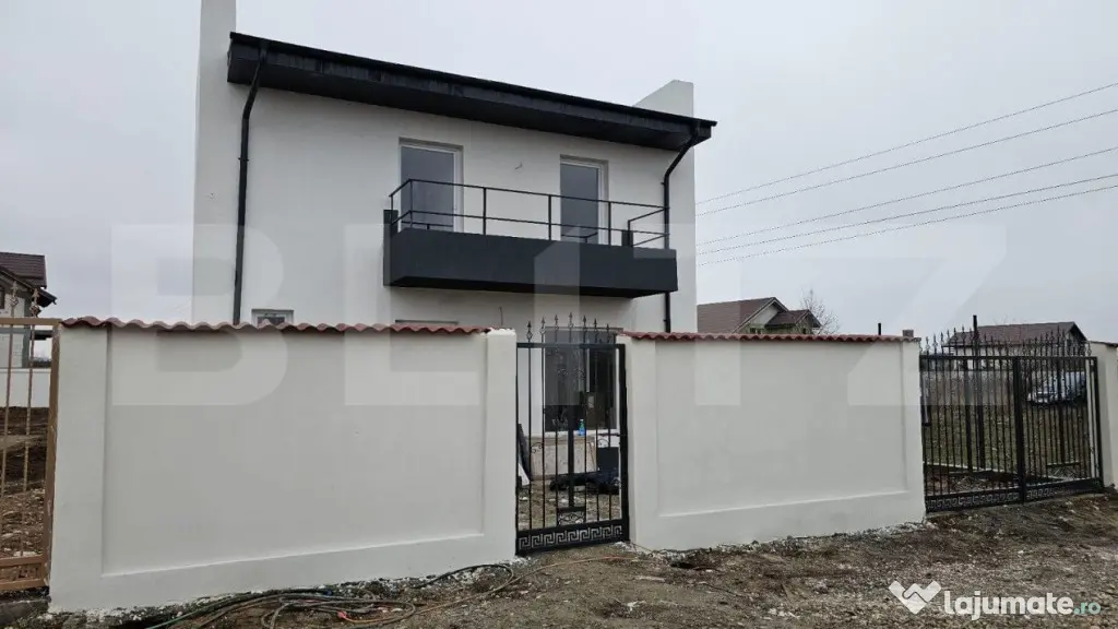 Blitz va propune spre vanzare o casa P+1 (115 mp utili) cu 140 mp construiti + 24 mp de terasa, cu 500 mp de teren, din BCA cu o fundatie de 1,4 m din beton B200, unde s au folosit 10 bare de 12, iar stalpii si placa fiind din beton B400, cu 8 bare de 12. La parterul casei regasim un living cu bucatarie open space avand posibilitatea de a inchide bucataria, o baie si o camera tehnica iar la etaj avem 3 dormitoare, baie si balcon. Casa a fost construita pentru a avea cheltuieli minime ce tin de utilitati, cu simt de raspundere din materiale de cea mai buna calitate, fapt care se poate demonstra cu ajutorul pozelor si a filmarilor din timpul construtiei. Este izolata cu polistiren de 10 cm, tencuita manual, s au dat 2 maini de adeziv dupa care a fost aplicata decorativa siliconata. Acoperisul din tabla a fost montat cu coltare si orsuruburi, s-a folosit folie de aluminiu, folie anticondens, 3 straturi de vata bazaltica de 10 cm, tamplaria este asemenea de cea mai buna calitate, Salamander tripan. Casa dispune de incalzire prin pardoseala Uponor care se face cu ajutorul unei centrala pe butelii gpl( fiind posibila montarea uni pompe de caldura la cerere si racodradea la gaz in viitorul apropiat), put forat, fosa ecologica, apa de la retea canalizarea si gazul fiind in curs de conetare. Finisaje folosite pentru interior sunt in ton cu restul construtiei. Strada pe care se afla proprietatea este de 9 metri cu piatra concasata, gardul fiind zidit din BCA. Pentru si mai multe detalii va asteptam la vizionare! Cod ofertă / ID BLITZ: P136806 Id intern: P136806 Număr Băi: 2 Curent Apă Canalizare