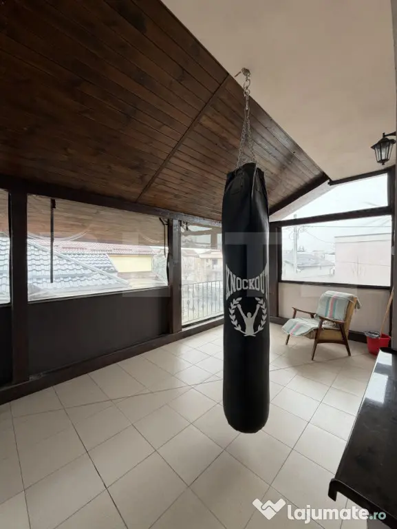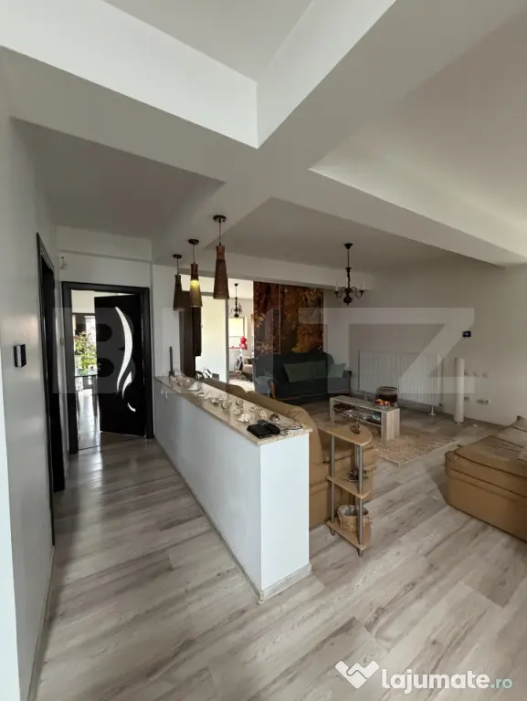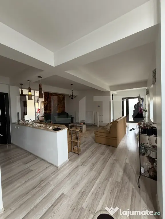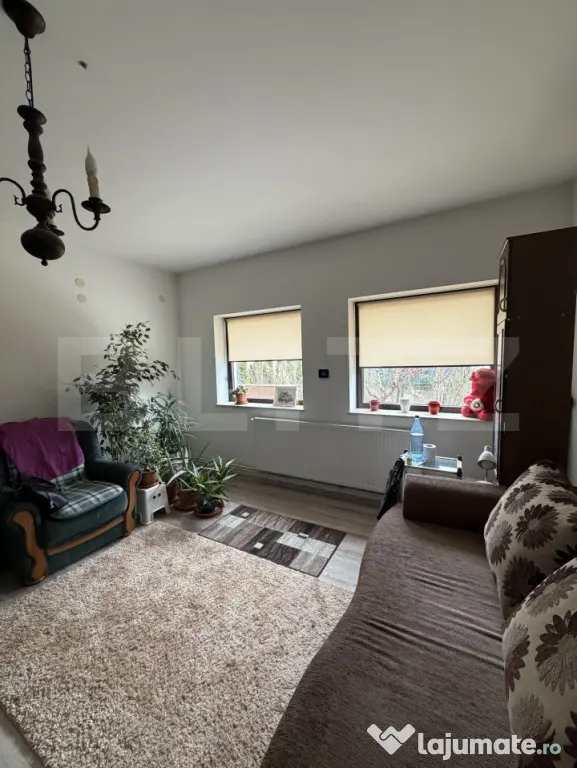 Compartimentare: hol, living mare (o parte a fost inchisa in geam si facut un dormitor suplimentar), dormitor 1 baie, bucatarie separata, etaj: hol, 1 baie, 3 dormitoare, 1 terasa, 1 balcon.