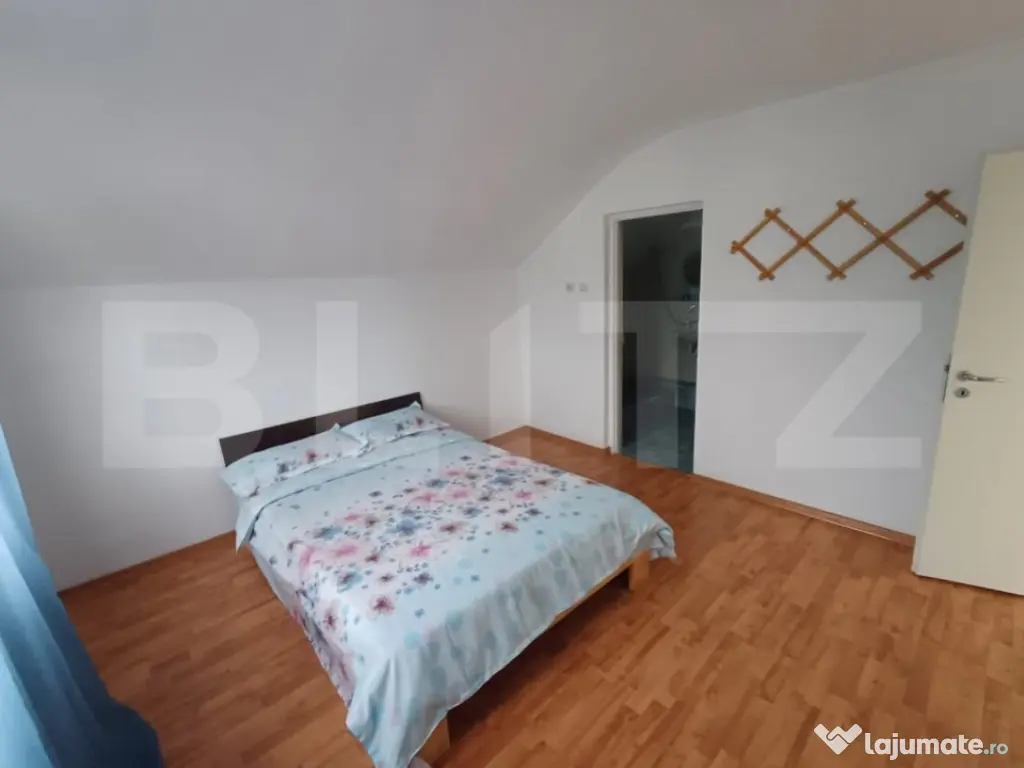Blitz va propune spre vanzare o casa cu etaj cu o suprafata utila de 155 mp in zona Arcani. Terenul aferent casei are o suprafata de aproximativ 450 mp cu deschidere la strada principala . Receptia imobilului a fost facuta in anul 2024 si este contruita cu materiale de cea mai buna calitate. In zona de parter a casei regasim un living foarte spatios cu bucatarie baie si dormitor. Accesul in zona de etaj se face pe o scara foarte incapatoare unde avem un hol cu o terasa cu vedere spre strada, patru dormitoare fiecare cu baie proprie . Casa este partial mobilata fiind construita pentru destinatia de Pensiune. Casa se afla pe un teren mai mare cu alte doua imobile aflate si ele la vanzare dar se va dezmembra in functie de cumparatori, putand fi vanduta individual sau toate trei imobile. Din punct de vedere al utilitatiilor casa este racoradata la curent, apa si canalizare. Incalzirea se face cu centrala individoala pe peleti avand si un sistem de incalzire a apei calde de la soare. Proprietatea este ideala pentru o familie iubitoare de liniste si natura dar si ca investitie pentru pensiune, unicitatea ei fiind reprezentata de fiecare dormitor cu baie proprie. Cu mai multe detalii va asteptam la vizionare! Cod ofertă / ID BLITZ: P143569 Id intern: P143569 Număr niveluri imobil: 1 Număr Băi: 5 Curent Apă Canalizare