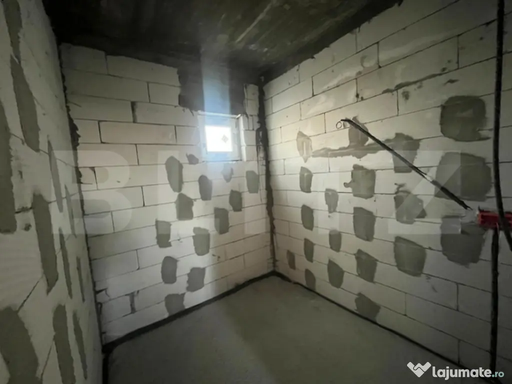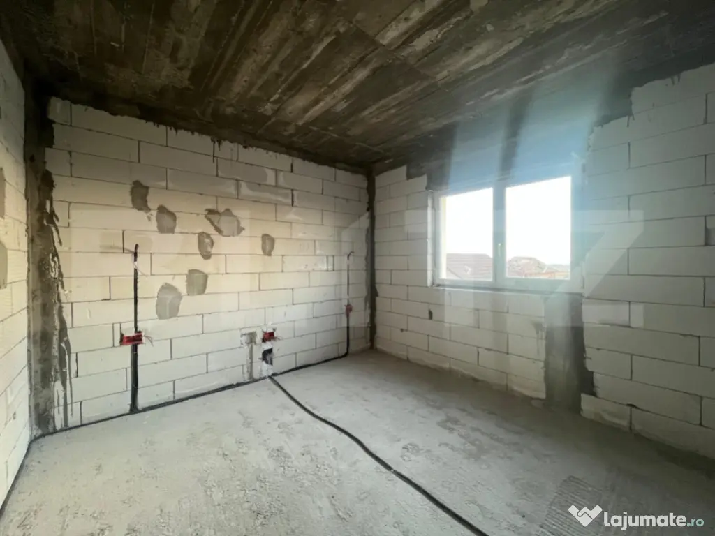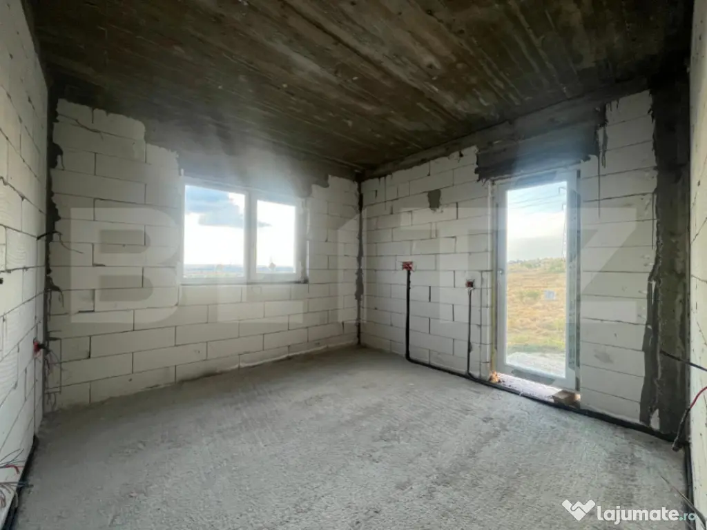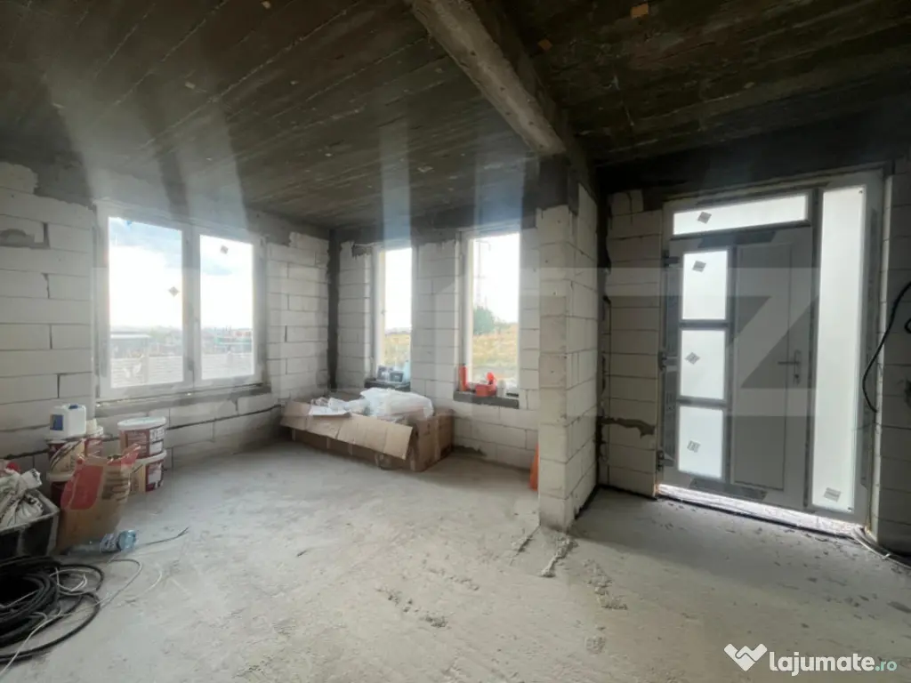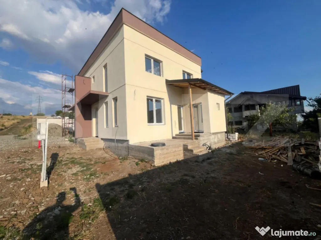 Blitz v a propune spre achizitie un duplex compus din doua casa P+1, fiecare avand o suprafata utila de 90 mp si 202 mp de teren aferent cu 13,5 ml deschidere la strada. Constructia este realizata la inceputul acestui an, avand o structura solida din beton armat si zidaria din BCA, avand placa beton atat intre parter si etaj cat si peste etaj, este acoperita cu tabla Bilka, izolata si cu decorativa siliconata, aplicata. La parter regasim un hol din care facem putem accesa zona de living, baia si bucataria de unde putem iesi in terasa si catre camera tehnica. La etaj avem disponibile doua dormitoare, unul dintre ele avand balcon si o baie. Casa beneficiaza de curent, apa de la retea, fosa septica pana in viitorul apropiat, canalizarea fiind in zona iar ca sursa de incalzire v a beneficia de pompa de caldura cu panouri fotovoltaice. Pretul este pentru constructia la stagiul prezentat si in poze fiind posibila vanzare la orice stagiu, inclusiv la cheie, la un alt pret. Pentru orice fel de detalii nu ezitati sa ne contactati! Cod ofertă / ID BLITZ: P150313 Id intern: P150313 Număr Băi: 2 Nr. locuri parcare: 2 Curent Apă