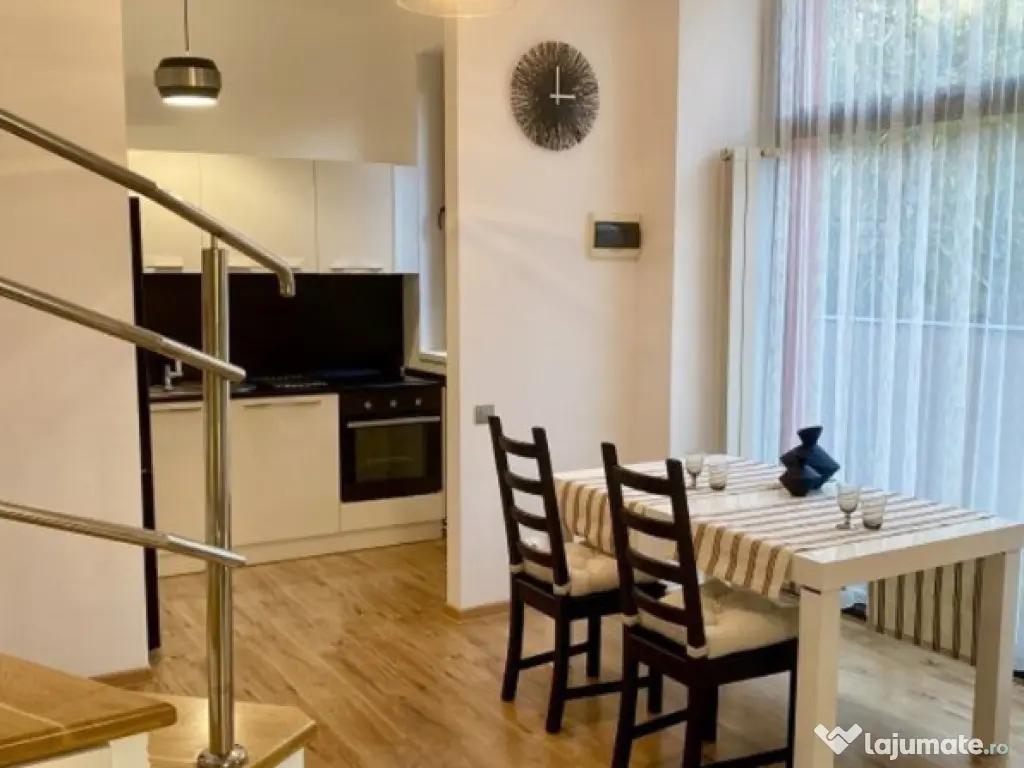 Casa P+1+curte, pretabila pentru companie sau familie - Zona ultracentrala, la 2 minute (pe jos) de Casa Poporului, Hotel Marriott si Catedrala Mantuirii Neamului - Suprafata utila totala de 95 mp, compusa din 75 mp locuibili si 20 mp curte - Parterul cu un total de 37,5 mp compus din living, bucatarie deschisa si baie - Etajul este conectat printr-o scara interioara, fiind in oglinda cu suprafata parterului, cu un total de 37,5 mp, compus din dormitor, baie cu cada si un hol luminos si generos de 12 mp ce poate fi transformat intr-o camera deschisa de lucru sau dressing - An constructie - 2010 - Partial mobilata, dotari si finisaje de calitate - Centrala proprie - Camere de supraveghere - Internet wireless de mare viteza - Cablu Tv + televizor led - Masina spalat Numar niveluri imobil: 1 Numar Bai 2 Va astept la vizionat cu drag. Număr niveluri imobil: 1 Număr Băi: 2 Posibilitate parcare: Da Curent Apă Canalizare Gaz Încălzire Climă Sistem irigaţie