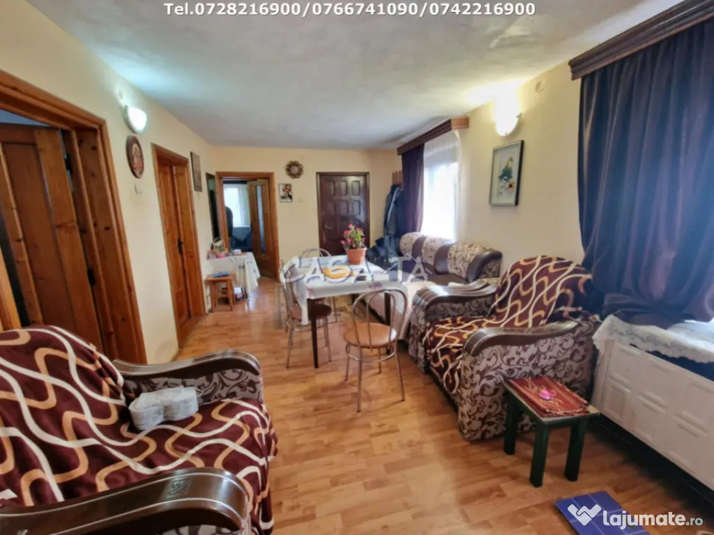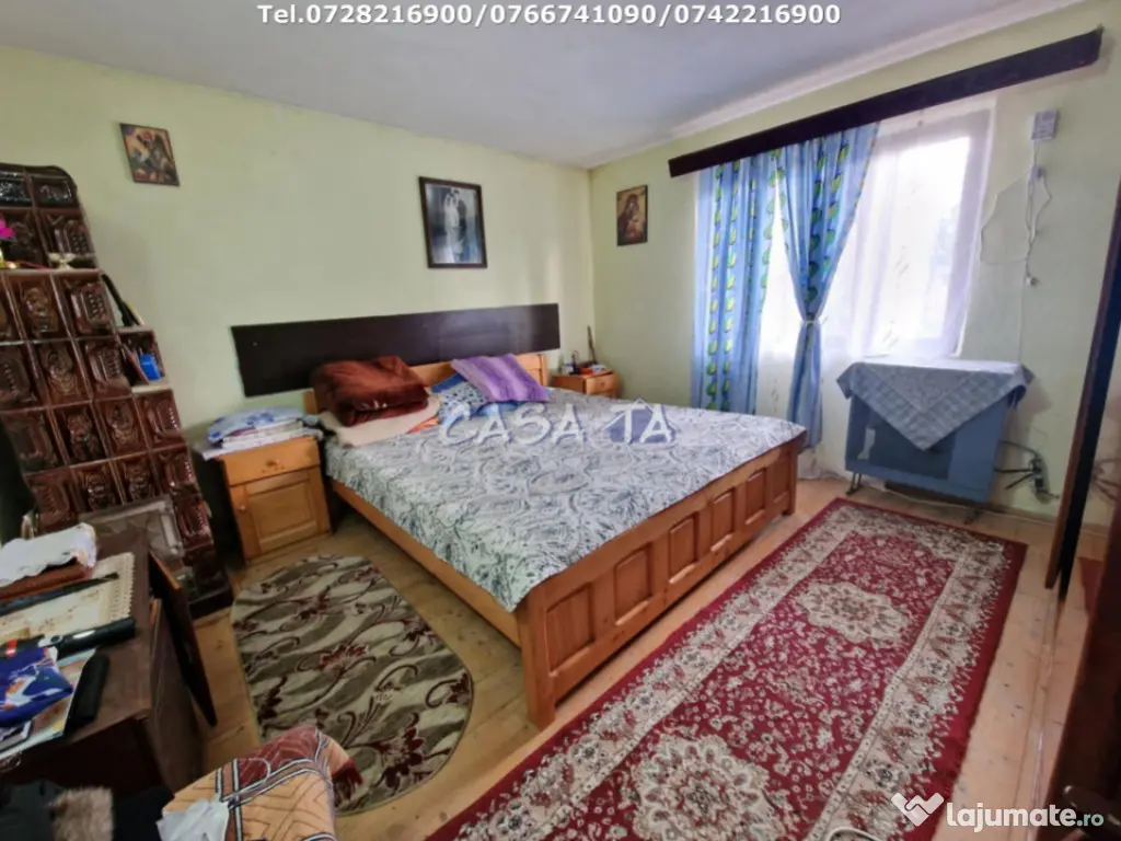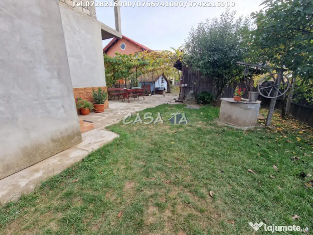 Agentia Imobiliara CASA TA ofera spre vanzare Casa P+1+M (2001) si Anexe, situata pe Aleea Sfantul Dumitru. Imobilul este compus din: 5 camere, 2 bai, 2 bucatarii, 2 balcoane, livada cu pomi fructiferi si vie, fantana. Etajul si mansarda nu sunt finisate. Suprafata construita este de 230 mp si teren aferent 2400 mp, deschidere 13 ml. Utilitati: Apa curenta, curent electric (380KW), canalizare, gaze, cablu TV, internet. Finisaje: Gresie, Faianta, Parchet, Glet/Lavabila, sobe teracota, boiler, convertor. Pret: 150.000 Euro/ Negociabil. Telefon: 0728216900 / 0742216900 / 0766741090. Id intern: P1812 Număr Băi: 2 Comision cumpărător: 0% Curent Apă Canalizare Gaz