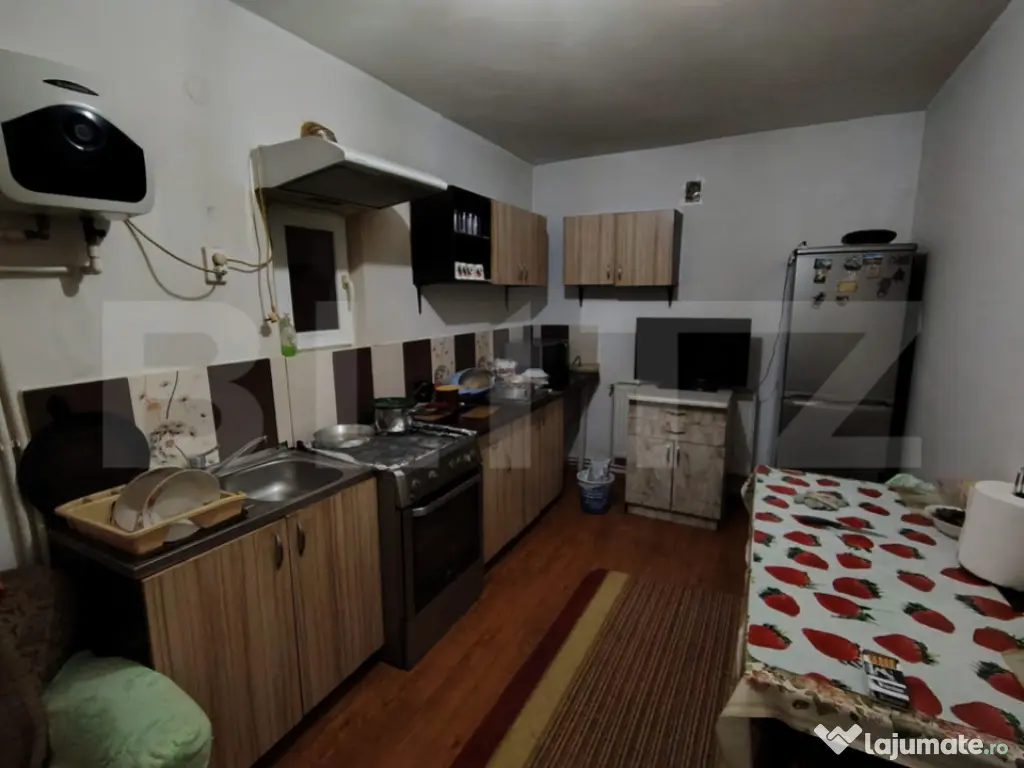 Blitz va propune spre achizitie o casa pe parter, situata in cartierul Lascar Catargiu, intr-o zona buna. Casa dispune de un living, doua dormitoare, o baie si o bucatarie, iar in curte avem un foisor in fata casei, iar in spatele casei mai este inca o bucatarie de vara, utilata si mobilata. Proprietatea este racordata la toate utilitatile, incalzirea se realizeaza cu ajutorul unei centrale pe gaze, casa fiind complet renovata si mobilata, iar acoperisul din tabla LINDAB a fost schimbat in totalitate, in primavara acestui an. Aceasta casa beneficiaza de toate elementele pentru confort si eficienta energetica, iar pozitionarea sa din cartierul Lascar Catargiu, ofera acces facil catre toate punctele de interes din oras. Pentru mai multe detalii, va asteptam cu drag la vizionare! Cod ofertă / ID BLITZ: P158594 Id intern: P158594 Număr Băi: 1 Curent Apă Canalizare Gaz