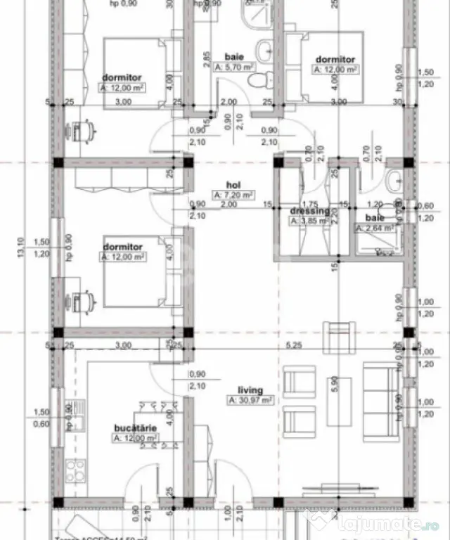 Locuința oferă un spațiu echilibrat și bine organizat, ideal pentru o familie care își dorește intimitate și funcționalitate: