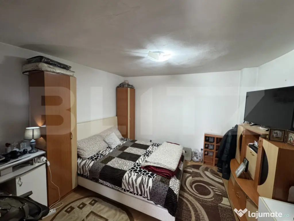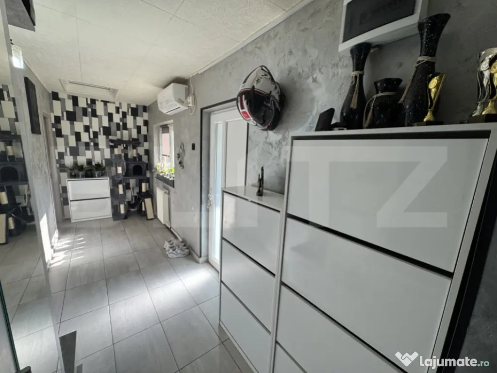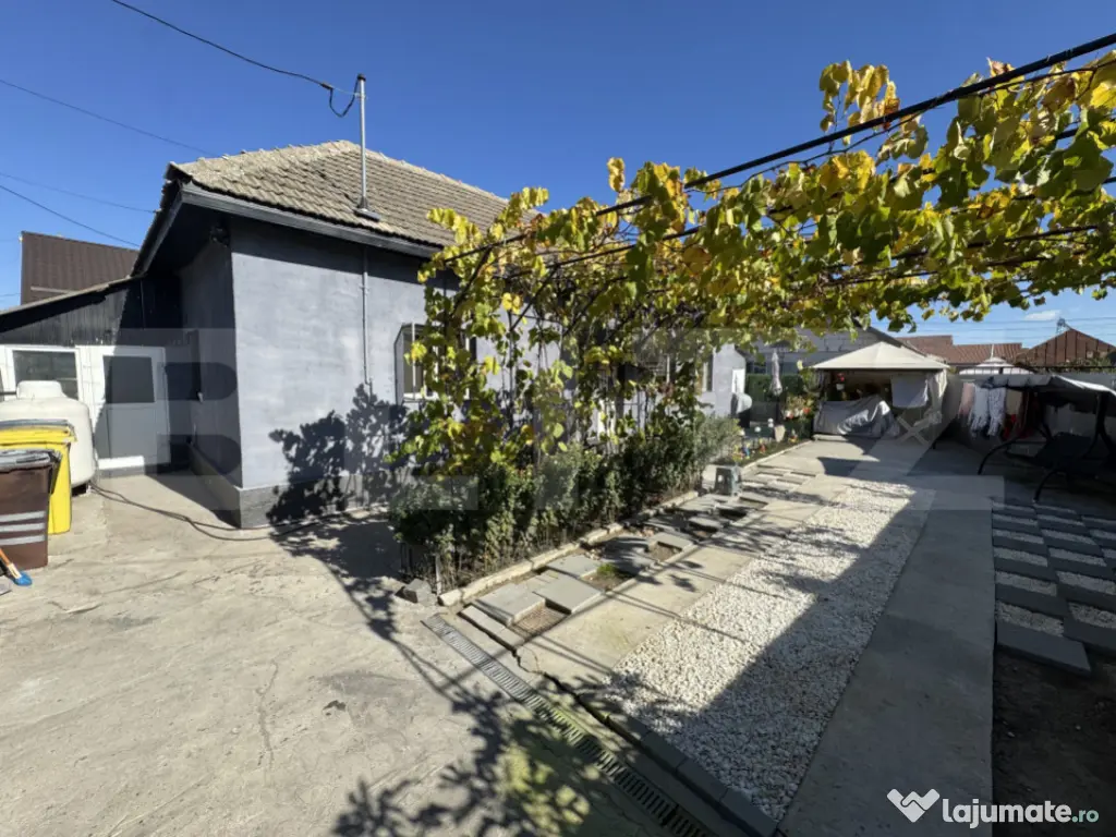 Blitz va propune spre achizitie o casă modestă, dar cu un aer modern și primitor, situată în cartierul Brestei, pe strada Fermierului. Proprietatea este dispusă pe parter și oferă un spațiu echilibrat și funcțional, cu o suprafață construită de 86 mp și o suprafață utilă de 58,75 mp, compartimentată inteligent în 2 dormitoare, sala, hol, baie și bucătărie. Construită solid în anul 2002 din bolțari și complet renovată în 2022, casa oferă confort și eficiență energetică datorită izolației exterioare, ferestrelor și ușii termopan, acoperișului din țiglă și centralei termice pe butelie de gaz, completată de aerul condiționat. Terenul are o suprafață totală de 276 mp, din care 190 mp sunt disponibili, cu un front stradal generos de 15,7 m pe o stradă pietruită. Curtea permite parcarea a până la 5 mașini și include o cameră tehnică separată. Documentația cadastrală și actele sunt în curs de actualizare, în vederea intrării în legalitate. Casa se vinde complet mobilată și utilată, fiind o alegere ideală pentru cei care caută o locuință gata de mutat, într-o zonă liniștită, dar accesibilă. Cod ofertă / ID BLITZ: P155751 Id intern: P155751 Număr Băi: 1 Nr. locuri parcare: 5 Curent Apă Canalizare Climă