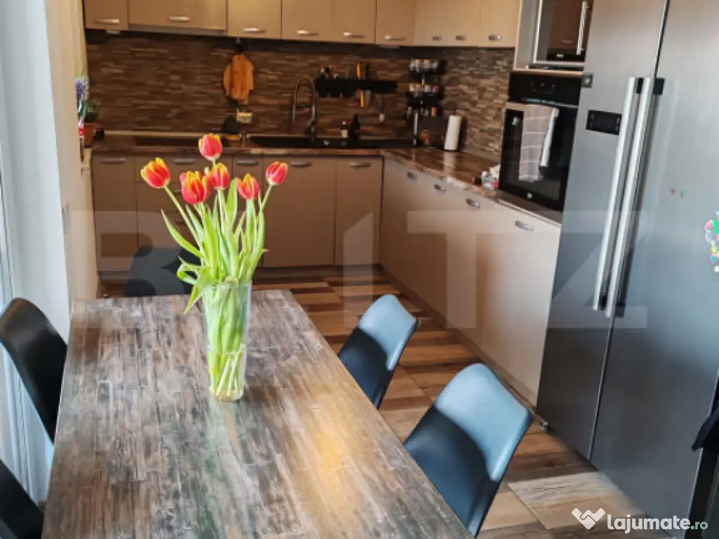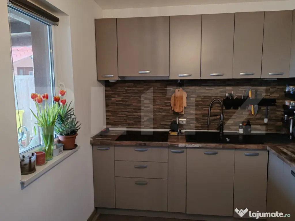 Blitz vă propune spre vânzare o casă pe parter, cu 4 camere, situată în Hărman, amplasată pe un teren de 463 mp, ideală pentru o familie care își dorește confort și liniște. Locuința are o suprafață utilă de 100 mp și este compartimentată eficient în living, bucătărie, 3 dormitoare, baie (cu posibilitate de amenajare a celei de-a doua), hol, 2 debarale și pod, la care se adaugă o terasă acoperită de 19,6 mp. Construcția este realizată din cărămidă, cu acoperiș din tablă, izolată exterior cu polistiren de 10 cm și finisată la interior cu rigips. Beneficiază de încălzire în pardoseală și finisaje precum parchet, gresie și faianță. Imobilul este racordat la toate utilitățile: apă, canalizare, curent electric și gaz. Se vinde complet mobilată și utilată, fiind pregătită pentru mutare imediată. Cod ofertă / ID BLITZ: P168596 Id intern: P168596 Număr Băi: 1 Curent Apă Canalizare Gaz