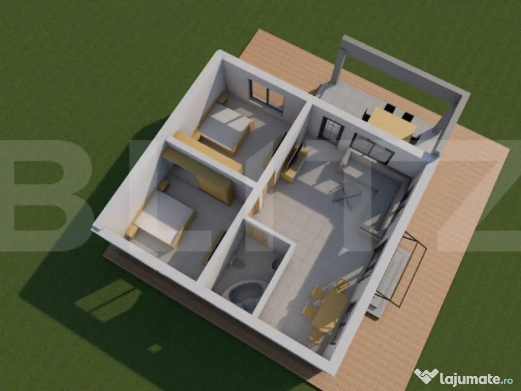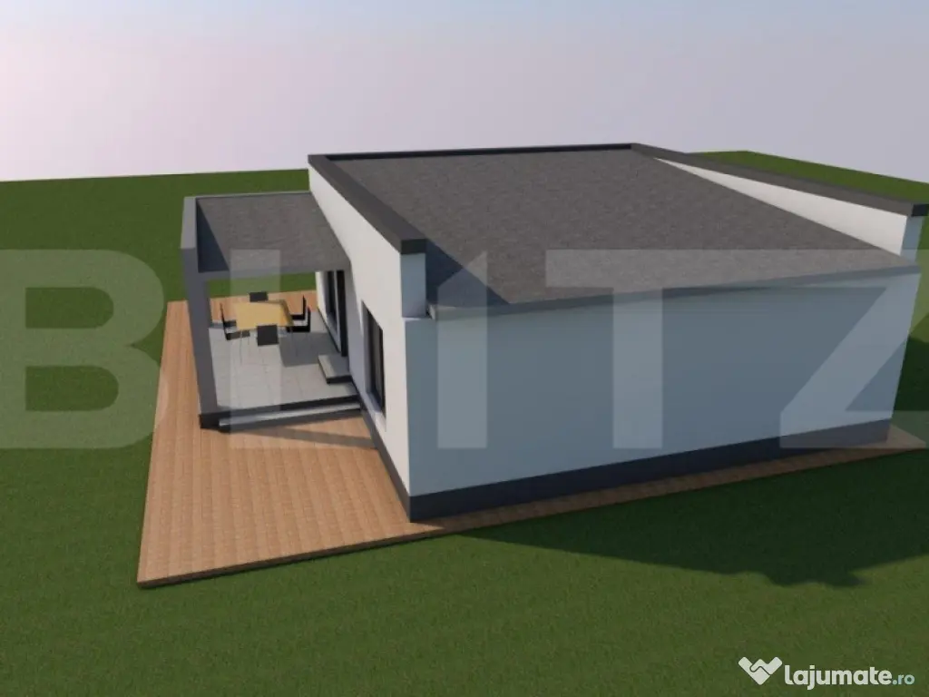 Oferim spre vanzare casa parter cu 3 camere, finisată la cheie, intr-un proiect rezidential nou ce cuprinde 16 case și oferă viitorilor proprietari o compartimentare interioară după cum urmează: living, bucatarie inchisa sau openspace, 2 dormitoare, 1 baie, și terasa cu ieșire din living. Materiale de calitate, toate utilitatile, cartier rezidential.. Suprafata utila totala: 108 mp Suprafata desfasurata: 128 mp Suprafata teren: 576 mp Utilitati: curent electric, apa, gaz, canalizare.. Exista posibilitatea achizitiei cu un avans de minim 20% cu antecontract notariel. Pentru a discuta opțiunile de plata, va rugam să ne contactați telefonic. Va invitam la vizionare pentru a putea observa calitatea construcției si a materialelor utilizate. Cod ofertă / ID BLITZ: P92495 Id intern: P92495 Număr Băi: 1 Nr. locuri parcare: 2 Curent Apă Canalizare Gaz