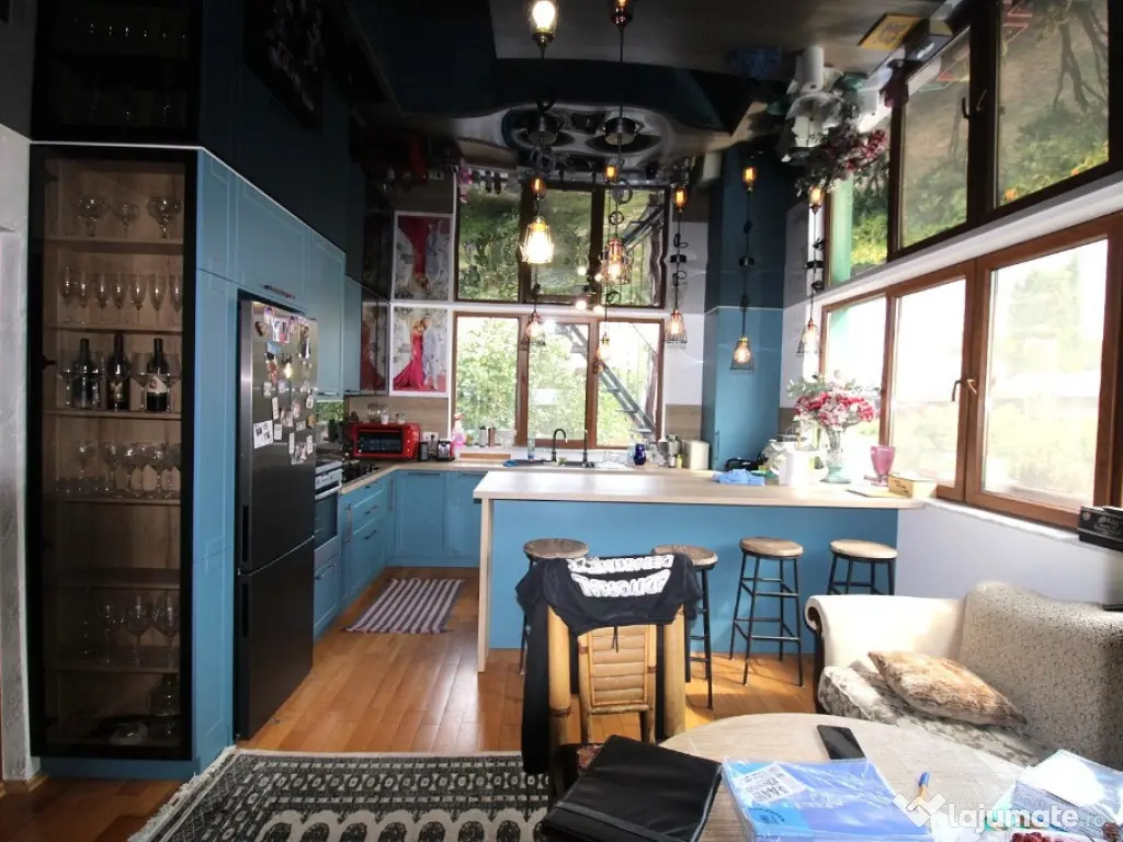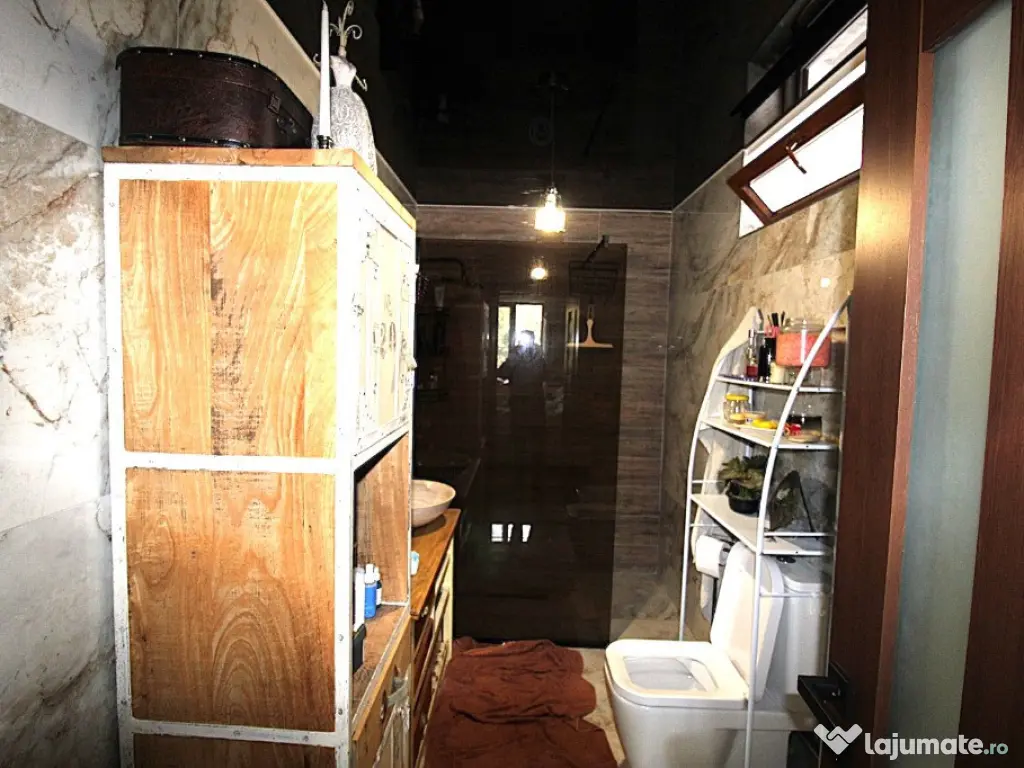 Casa pe strada Lozoveni construita pe o structura din cadre de beton si caramizi, este acoperita cu tabla tip Lindab si izolata cu polistiren de 10 cm. Terenul aferent constructiei este in suprafata de 1003 mp cu o deschidere de 19 m. Imobilul are o suprafata de 200 mp, cu o amprenta de 170. Casa este dispusa pe parter si mansarda. La parter avem: living open space cu bucataria, 4 dormitoare dintre care unul cu baie proprie, dressing si baie. La mansarda sunt 2 camere mari. Proprietatea are urmatoarele anexe: parcare in curte, 2 foisoare, beci, bucatarie de vara, si magazii. Casa este racordata la: curent electric, apa, gaze si canalizare. Incalzirea si apa calda se obtin cu ajutorul unei centrale termice pe gaze. Imobilul are sistem de supraveghere video si alarma. Curtea interioare este amenajata cu aleii si gazon. Proprietatea are in imprejurimi zone comerciale, scoli, zone verzi, restaurante, zone de agrement. Număr niveluri imobil: 1 Număr Băi: 2 Posibilitate parcare: Da Curent Apă Canalizare Gaz
