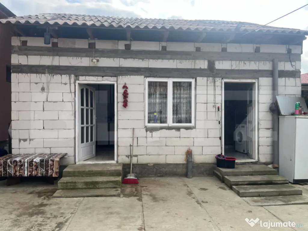 Blitz va propune spre vanzare o proprietate compusa din 2 constructii pe parter, situate pe un teren de 397 mp, in cartier Romanesti. Curtea este betonată în proporție de 85%, ușor de întreținut, cu posibilitate de amenajare zonă de relaxare sau locuri de parcare, iar deschiderea la strada principală este de 11,4 metri liniari. Proprietatea dispune de aproximativ 100 mp utili fiind compusa din 2 constructii separate. Casa care este si finisata complet, este construita din caramida si compartimentata astfel : un hol cu 2 dormitoare spatiase si un living + o camera tehnica pentru centrala , incalzirea facandu-se prin centrala cu lemne. Cea de-a doua constructie , fiind din BCA, cuprinde o baie si o bucatarie. Ca si utilitati dispune de apa curenta si energie elctrica, canalizarea fiind la frontul proprietatii. Se află într-o zonă accesibilă, liniștită și bine conectată la rețeaua de utilități. Pentru mai multe informații sau pentru a programa o vizionare, vă rugăm să ne contactați. Cod ofertă / ID BLITZ: P155679 Id intern: P155679 Număr Băi: 1 Curent Apă