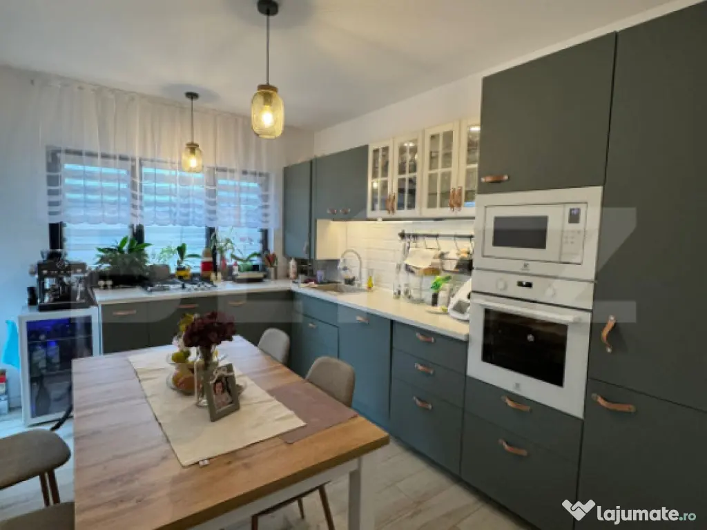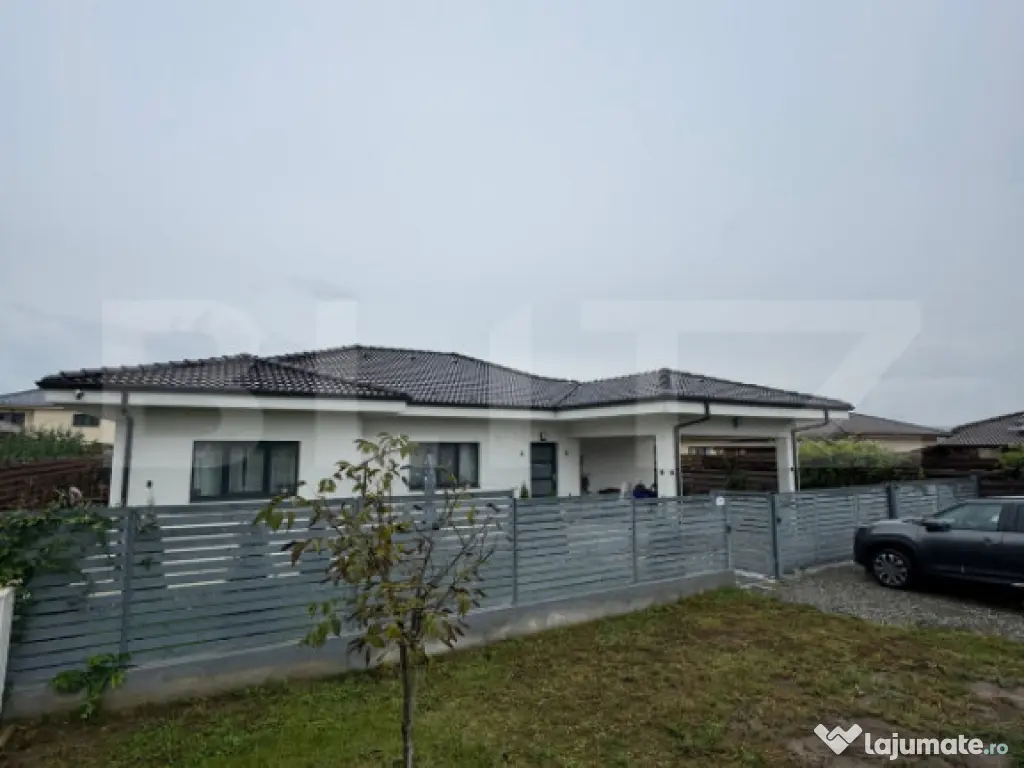 Blitz oferă spre vânzare o casă modernă în Jucu de Sus, locul ideal pentru cei care își doresc liniște, spațiu și confort, la doar 20 de minute de Cluj-Napoca. Proprietatea se vinde complet mobilată și utilată, fiind pregătită pentru mutare imediată – perfectă pentru o familie care își dorește confort fără stresul amenajărilor ulterioare. Casa dispune de o suprafață utilă de 120 mp, compartimentată modern și eficient, și este amplasată pe un teren de 600 mp, complet împrejmuit și amenajat. Compartimentare inteligentă: Living primitor, spațios și mobilat cu gust – ideal pentru relaxare Bucătărie închisă, complet mobilată și utilată Dormitor matrimonial cu baie proprie și dressing încăpător Două dormitoare secundare, luminoase – potrivite pentru copii, oaspeți sau birou A doua baie, finisată modern Terasă generoasă, ideală pentru momentele de relaxare în aer liber Avantaje: Nu necesită investiții suplimentare Finisaje moderne, realizate cu materiale de calitate Zonă exclusiv de case noi, cu trafic redus Liniște și intimitate garantate Această proprietate reprezintă alegerea ideală pentru cei care caută un cămin modern, într-o zonă aerisită și bine conectată la oraș. Pentru mai multe detalii sau pentru programarea unei vizionări, vă invităm să ne contactați! Cod ofertă / ID BLITZ: P161634 Id intern: P161634 Număr Băi: 2 Nr. locuri parcare: 2 Curent Apă Canalizare Gaz