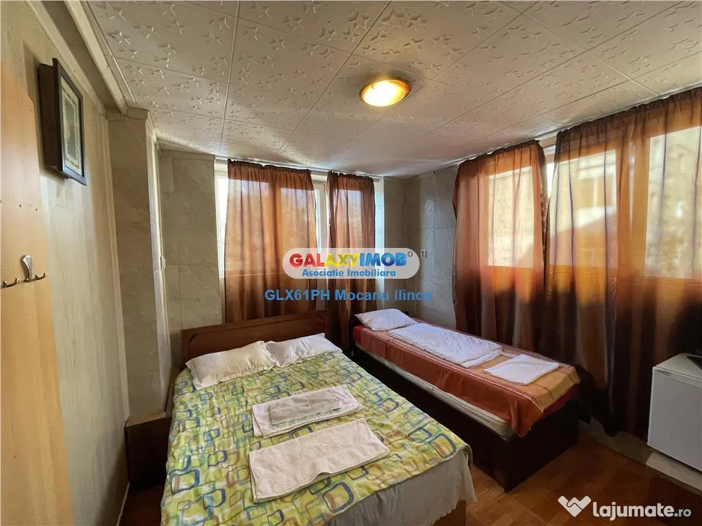 Inchiriere casa pentru muncitori, 30 locuri, in Ploiesti, zona Vest, avand ca vecinatati si puncte de interes: Profi, West Mall, Gara de Vest, magazine, statii pentru mijloace de transport. Casa este construita in 2008, din beton si este izolata exterior. Suprafata de 370 mp are urmatoarea compartimentare: Parter: bucatarie cu sala de mese; Etaj 1: 5 camere triple, fiecare cu grup sanitar; Etaj 2: 5 camere triple, fiecare cu grup sanitar, sala de mese. Finisaje: gresie, faianta, tamplarie PVC cu geam termopan, usi interioare din panel. Incalzirea se realizeaza prin termoficare. Casa se inchiriaza complet mobilata si utilata, cu paturi duble si single, spatii de depozitare, televizor in fiecare camera, aragaz, frigidere, minibar-uri, 2 masini de spalat rufe. Costul chiriei este de 2500 euro lunar, o luna avans plus o luna garantie. Comision: 50%. Informatii eficienta energetica: Clasa energetica: B Consumul de energie primara: Indicele de emisii echivalent CO2: Consum de energie din surse regenerabile: Număr niveluri imobil: 2 Număr Băi: 10 Curent Apă Canalizare Gaz