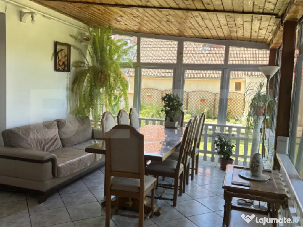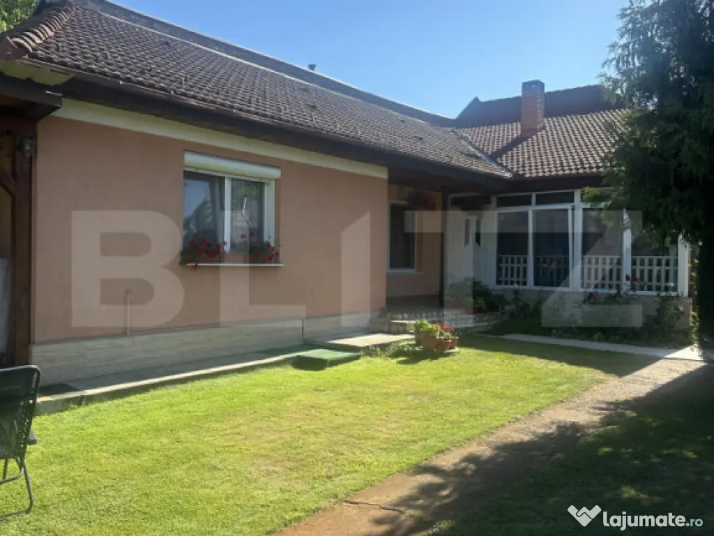 Compartimentare:doua sufragerii spațioase, ideale pentru relaxare și primirea oaspeților; doua dormitoare luminoase, amenajate pentru confortul familiei, o terasă închisă, transformată într-o cameră mare, multifuncțională; o cameră de relaxare, perfectă pentru hobby-uri, citit sau momente de liniște; doua bucătării complet echipate, ideale pentru familii numeroase sau gătit intensiv,precum si doua băi.Casa are si o crama personalizată – un spațiu autentic, perfect pentru pasionații de vinuri sau pentru relaxare.Garajul este încăpător cu 2 locuri pentru mașini și exista lângă un spațiu suplimentar pentru depozitare, precum și o cameră dedicată pentru scule și unelte.