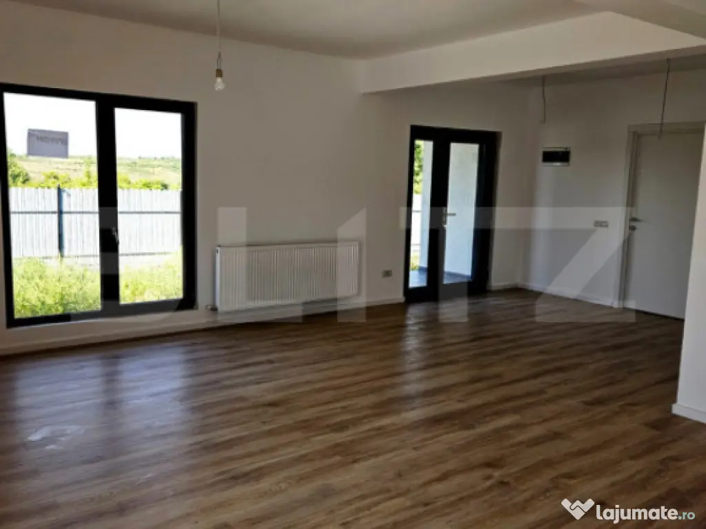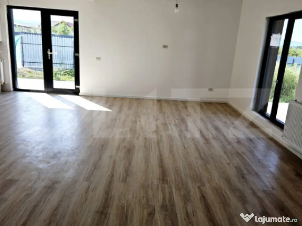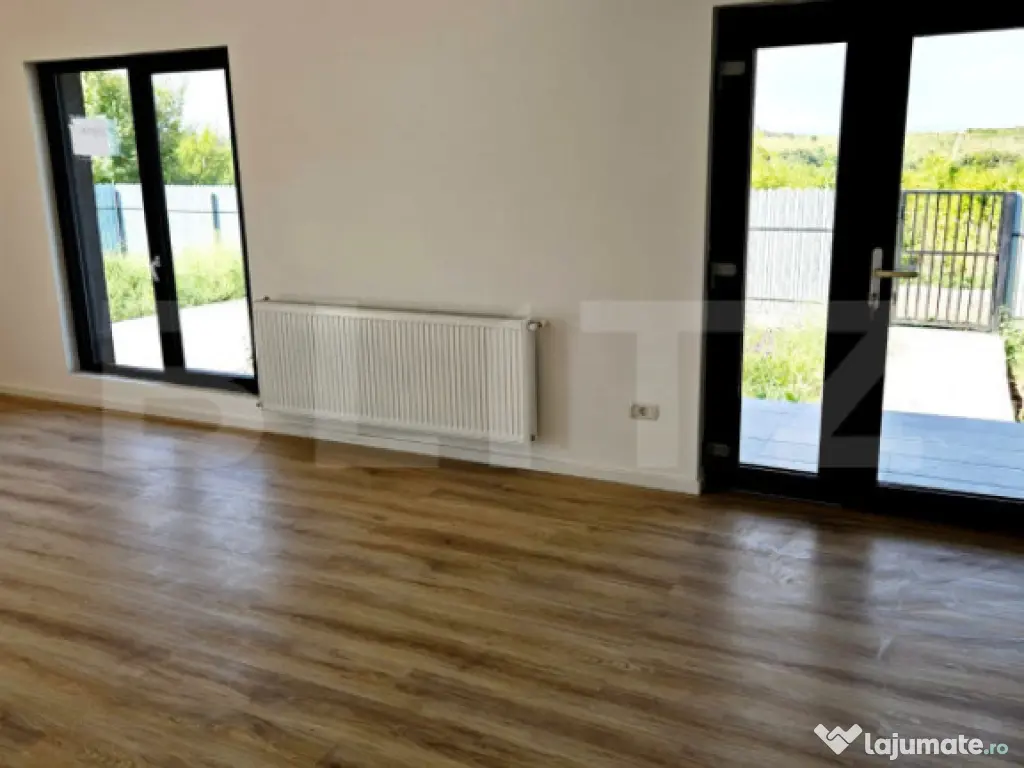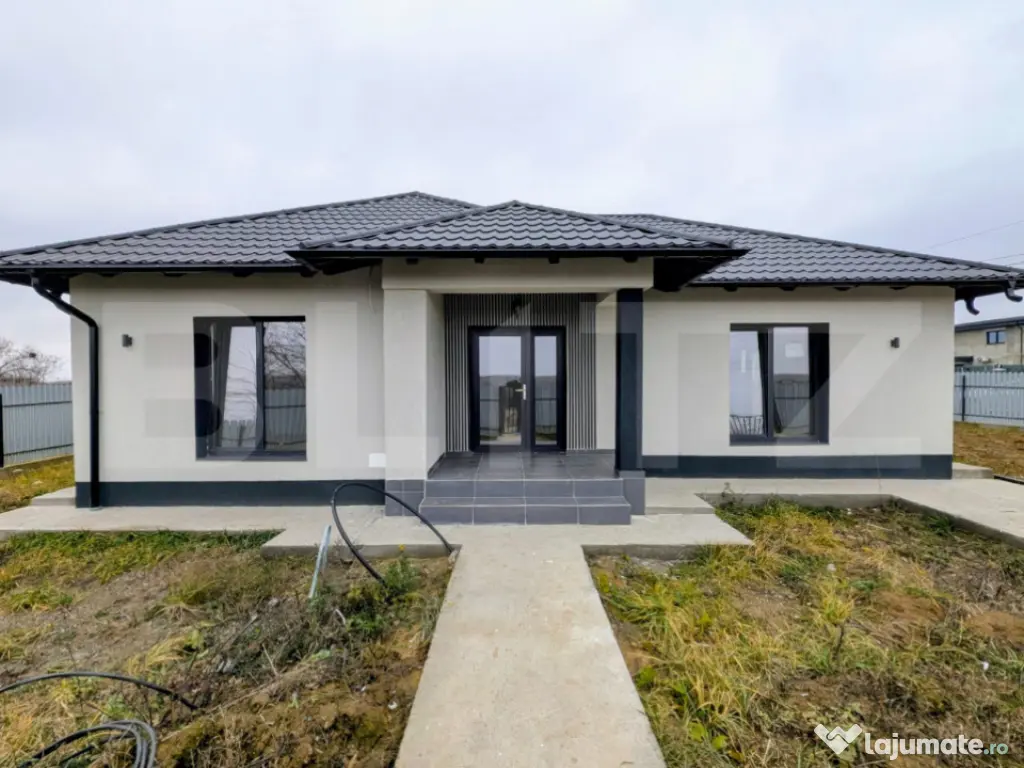 Blitz va propune o casa moderna și practica, perfecta pentru o familie sau pentru cei care isi doresc confort pe un singur nivel. Proprietatea are 77m² utili si 85 mp cu tot cu terasa, compartimentati eficient, si este amplasata pe un teren de 350 m², suficient pentru gradina, loc de relaxare sau spatii de joaca, cu posibilitatea de a achizitiona inca 350 m2 Compartimentare: -2 dormitoare luminoase, ideale pentru familie, birou sau camera de oaspeti -Living generos, cu acces facil catre zona de dining și bucatarie -Bucatarie care poate fi realizata deschisa sau închisa, în functie de preferintele cumparatorului -Baie spatioasa Proprietatea se afla intr-o zona linistita, cu multe spatii verzi in apropiere. Accesul catre oras este foarte facil – exista statie de autobuz la doar 20 de metri, ceea ce face deplasarea rapida și comoda chiar si fara masina. O casa eficienta, personalizabila și amplasata intr-o locatie avantajoasa – ideala pentru cei care cauta liniste, dar vor sa ramana conectati la oras. Cod ofertă / ID BLITZ: P159969 Id intern: P159969 Număr Băi: 1 Nr. locuri parcare: 1 Curent Apă Gaz