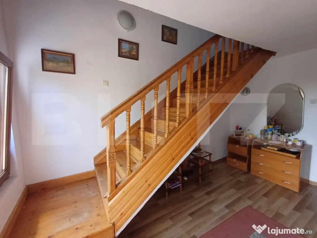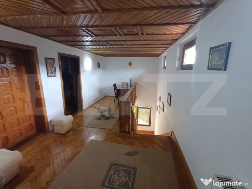 Blitz va propune spre vânzare o proprietate situată în zona Pestisani, ideală pentru locuință de familie extinsă sau casă de vacanță, cu teren generos de 2400 mp compus din curti, gradina, livezi si pasune avand o deschidere de 18 ml. Proprietatea este compusă din 3 corpuri de clădire: Corpul principal: 6 dormitoare, holuri, living, baie și bucatarie cu o suprafata de 180 mp. Al doilea corp: o bucătărie/ salon si beci avand deasupra construite 2 dormitoare construcia avand suprafata de 75 mp. Al treilea corp: baie de serviciu si diferite anexe– cu o suprafata de 64 mp. Se vinde mobilată și utilată complet, gata de mutat! Curtea este superb amenajată, cu: grădină de legume și pomi fructiferi cu put propriu si sistem de irigare, foișor, loc pentru grătar, cuptor tradițional, spații generoase pentru relaxare în aer liber. Utilități și facilități: Încălzire prin centrală pe lemne Apă curentă, fosa septica, ( sunt demarate lucrariile pentru canalizare), curent electric atat cu dou faze cat si trifazic. O proprietate completă, perfectă pentru cei care își doresc liniște, spațiu și confort într-un cadru natural. Cu mai multe detalii va ateptam la vizionare! Cod ofertă / ID BLITZ: P153318 Id intern: P153318 Număr niveluri imobil: 1 Număr Băi: 2 Curent Apă Sistem irigaţie