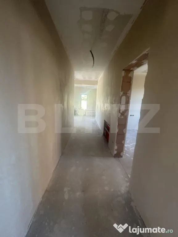 Construcția este realizată cu materiale de calitate, iar casa beneficiază de toate utilitățile necesare: gaz (cu racord pentru aragaz), curent electric, canalizare, apă și, foarte important, încălzire în pardoseală – un element esențial pentru un confort termic superior.Imobilul se vinde semifinisat, oferindu-ți astfel libertatea de a personaliza interiorul după gustul tău și de a transforma fiecare colț într-o expresie a stilului propriu. Tâmplăria, instalațiile și finisajele de bază sunt deja pregătite, lăsându-ți spațiul creativ deschis pentru amenajare.