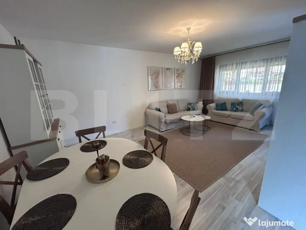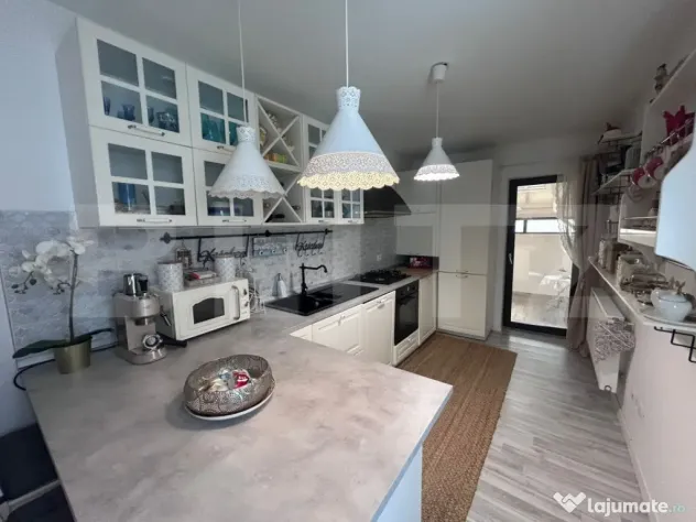 Compartimentarea este practică și include 3 camere, dintre care 2 dormitoare, o bucătărie deschisă, 2 băi (una prevăzută cu geam pentru aerisire naturală) și 2 balcoane si terasa acoperita incalzita. Orientarea mixtă asigură lumină naturală pe tot parcursul zilei.