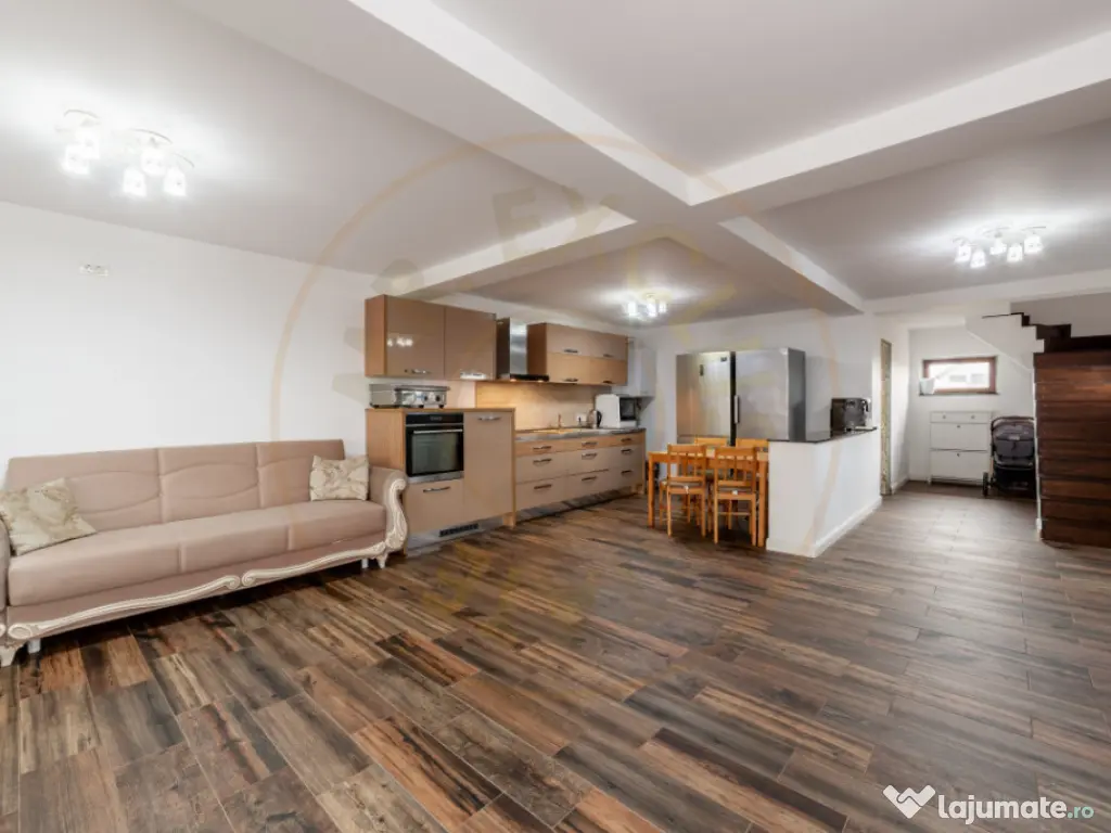 Casa moderna in Bradu – Spatiu, confort si relaxare aproape de Pitesti Situata intr-o zona noua si in plina dezvoltare din Bradu, la doar cateva minute de Pitesti, aceasta proprietate reprezinta o optiune echilibrata pentru cei care cauta linistea de la marginea orasului fara a face compromisuri la capitolul constructie. Casa este asezata pe un teren de 477 mp si are o structura de tip P+M, cu o suprafata utila de 120 mp. Compartimentare si dotari: Parter: Zona de zi este formata dintr-un living cu bucatarie open-space, un spatiu aerisit si luminos. Tot aici se afla o baie dotata cu sauna proprie – un detaliu care aduce un plus de confort in viata de zi cu zi. Terasa de la parter este spatioasa si ofera flexibilitate: poate ramane deschisa sau poate fi inchisa, devenind, dupa caz, loc de joaca, zona de relaxare sau spatiu pentru hobby-uri si colectii. Etaj: Accesul se face peste o placa solida de beton. Aici gasim doua dormitoare si o baie. Unul dintre dormitoare dispune de balcon, in timp ce al doilea beneficiaza de o terasa generoasa, neacoperita. Acest spatiu exterior de la etaj poate fi folosit in numeroase moduri, de la o zona de socializare in serile de vara, pana la un colt privat pentru plaja. Detalii tehnice si utilitati: Constructia este realizata din BCA de 25 cm, cu o izolatie exterioara din polistiren de 10 cm si izolatie interioara cu vata minerala, asigurand o eficienta termica buna. Sistemul de incalzire este mixt: centrala termica proprie (alimentata cu butelii de gaz), cu incalzire prin pardoseala la parter pentru un confort sporit si calorifere la etaj. Casa este racordata la reteaua de apa si curent electric, iar pentru colectarea apelor uzate dispune de o fosa ecologica. Stadiul de predare: Casa se vinde mobilata, exact cum se prezinta in imagini (cu exceptia televizoarelor, electrocasnicelor si a obiectelor personale). Interiorul este complet finalizat si nu necesita investitii imediate, fiind gata de locuit. La exterior, viitorii proprietari vor trebui sa aplice vopseaua decorativa si sa finalizeze finisajele teraselor, avand astfel ocazia de a personaliza aspectul final al casei dupa propriul gust. Comision ZERO pentru cumparator. Daca ai nevoie de credit ipotecar echipa Mr Exclusivitate iti este alaturi sa-ti gaseasca cea mai buna solutie de creditare. Id intern: P8325 Număr niveluri imobil: 1 Număr Băi: 2 Comision cumpărător: 0% Curent Apă Climă