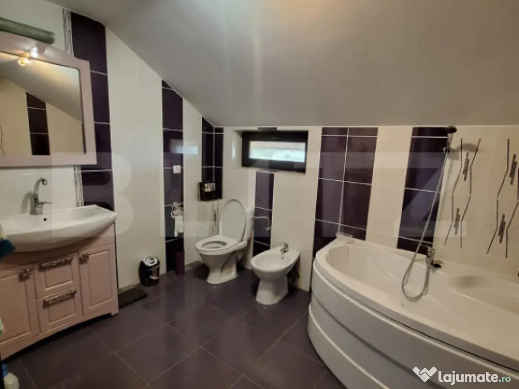 Blitz va ofera spre achizitie o casă individuală – Confort, spațiu și natură în Ghercesti. Vă prezentăm o casă ideală pentru familii, construită cu grijă în anul 2017, pentru uz personal, ceea ce se reflectă în calitatea execuției și în compartimentarea atent gândită, cu acces rapid la facilități urbane, dar suficient de retrasă cât să vă ofere liniștea de care aveți nevoie. Detalii proprietate: Construcție solidă din BCA, cu o suprafață utilă: aprox. 171 mp Teren generos de 769 mp Compartimentare funcțională și spații aerisite - Parter: living, bucatarie cu iesire spre o terasa generoasa de 28 mp, baie, birou/dormitor, camara de depozitare. - Mansarda : 3 dormitoare dintre care unul cu dressing si balcon, baie si hol. Casa dispune de toate utilitatile si se vinde la stadiul mobilat - utilat complet. Curtea este total amenajata cu gazon, numeroase flori si pomi fructiferi ajunsi la maturitate. Ideală pentru familii cu copii, dar potrivită și pentru oricine caută spațiu, intimitate și liniște, într-un mediu prietenos și aproape de oraș. Posibilitate de schimb cu apartament!!!! Va asteptam la vizionare cu mai multe detalii! Cod ofertă / ID BLITZ: P150603 Id intern: P150603 Număr Băi: 2 Curent Apă Canalizare Gaz Climă