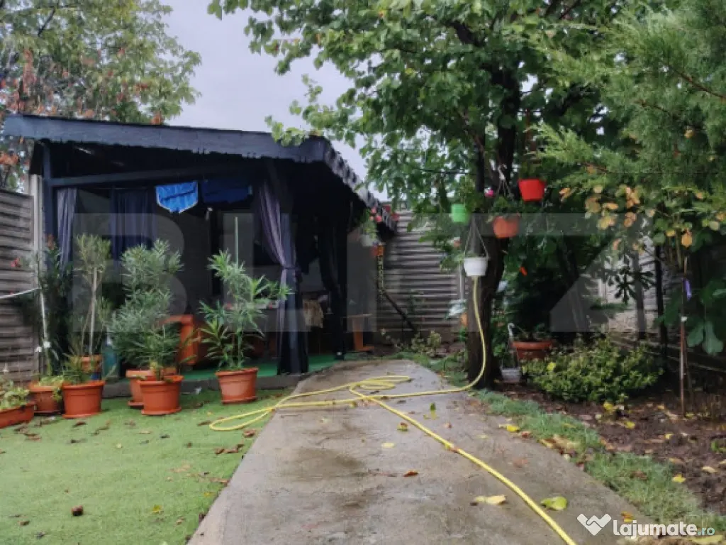 In curte, în spatele terasei inchise, se află o magazie mică pentru depozitare. Tot in curte se mai afla si un grătar din cărămidă, cu un blat generos, iar in spatele curtii avem un foișor deschis, precum si o mică gradină cu flori și pomi!