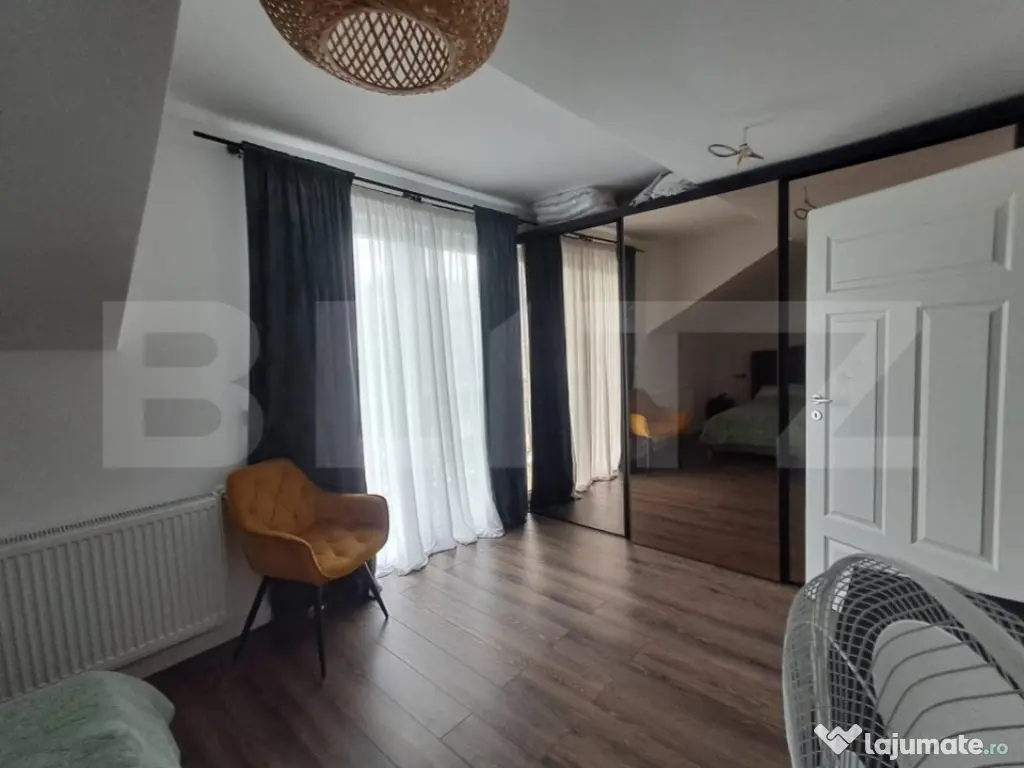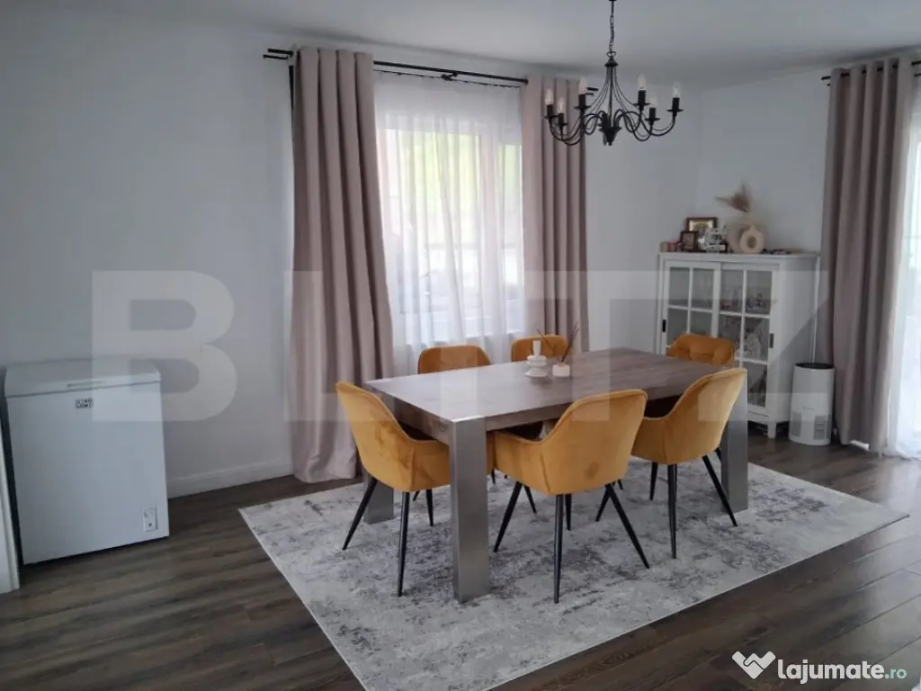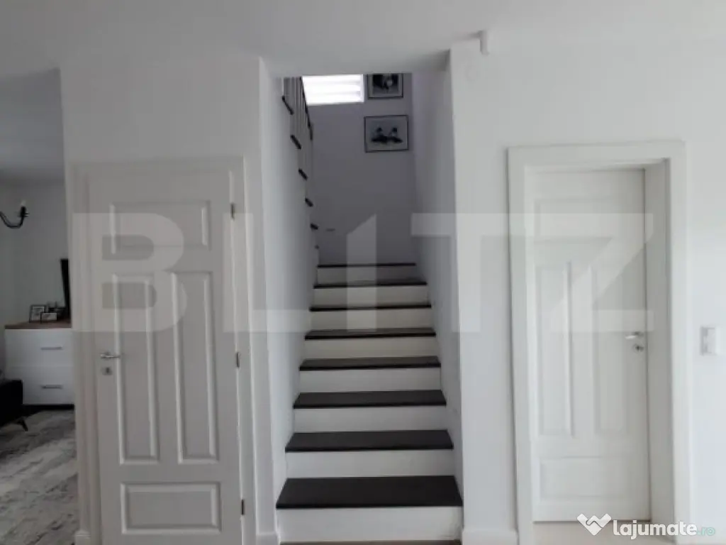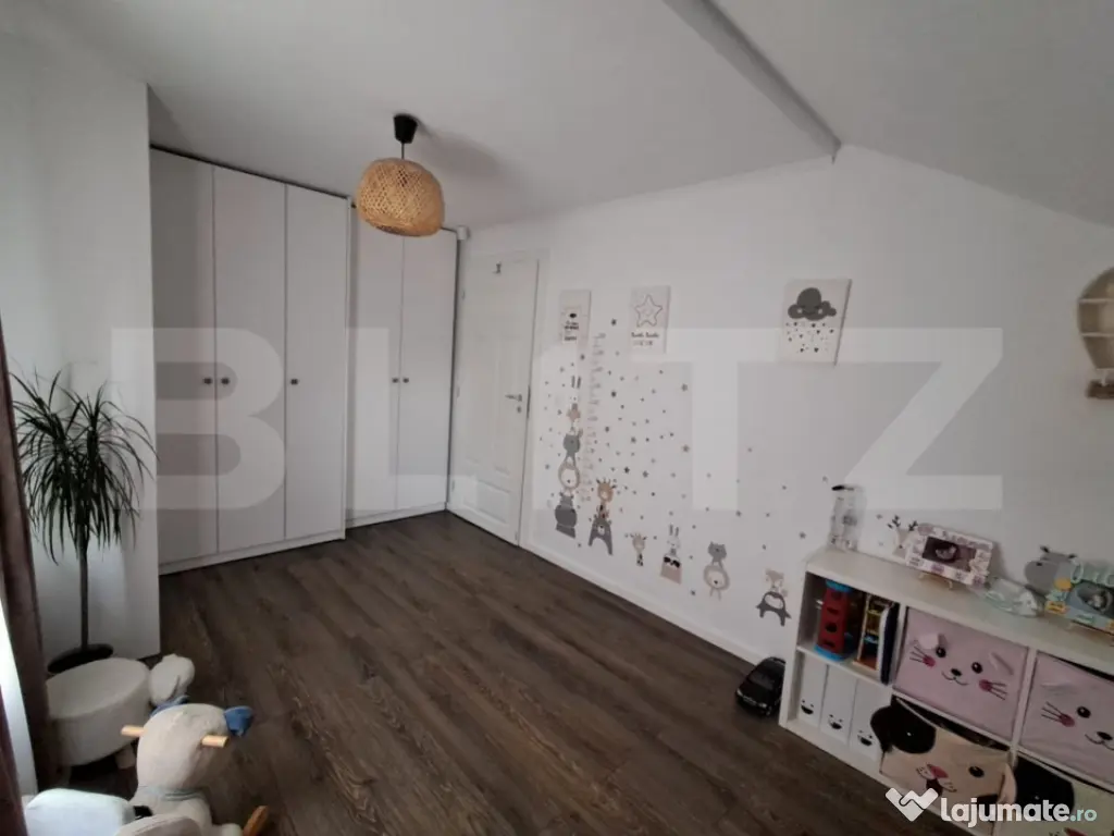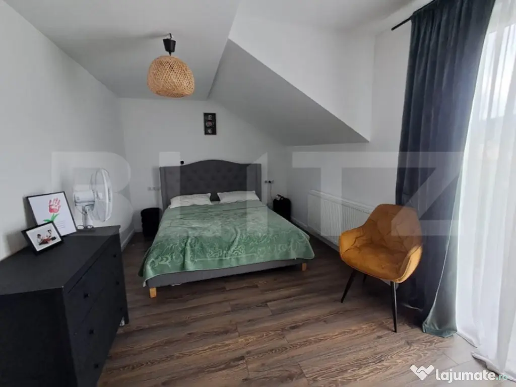 Agantia Blitz va propune spre vânzare o casă individuală, parter + mansardă, cu o suprafață utilă de 130 mp, situată pe un teren generos de 500 mp, într-o zonă liniștită, ideală pentru familii. Compartimentare funcțională și spațioasă: Living generos și luminos 3 dormitoare Bucătărie complet utilată 2 băi moderne (una dotată cu jacuzzi, cealaltă cu cabină de duș) Spațiu de depozitare Curte amenajată cu gust: Loc de joacă pentru copii Zonă verde cu mult spațiu pentru relaxare Locuri de parcare pentru 2 autoturisme Poartă automată cu telecomandă Construcție finalizată în 2017, realizată cu materiale de calitate, mobilată și decorată cu bun gust. Anexă suplimentară de 60 mp în spatele casei, cu multiple posibilități de utilizare: Spațiu ideal pentru construcția unei locuințe de oaspeți Amenajare pentru zonă de grătar / barbeque Terasă de relaxare sau atelier hobby Localizare excelentă: Doar 2 km până în centrul orașului Supermarketuri, școală, grădiniță și mijloace de transport în comun în apropiere Parcul municipal la doar 2 minute cu mașina Pădure în apropiere – perfectă pentru plimbări și relaxare în natură Ideală pentru o familie cu copii, care caută confortul unei locuințe moderne într-o zonă liniștită și verde, dar totodată aproape de facilitățile orașului. Pentru mai multe informații sau pentru programarea unei vizionări, nu ezitați să ne contactați! Cod ofertă / ID BLITZ: P146602 Id intern: P146602 Număr niveluri imobil: 1 Număr Băi: 2 Nr. locuri parcare: 2 Curent Apă Gaz