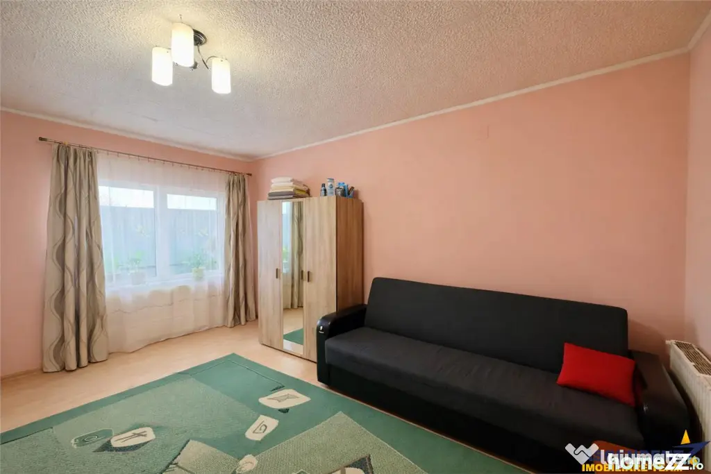 compartimentata astfel: 2 camere, o bucatarie, living, hol, 2 bai, garderoba, terasa si pivnita separata. Incalzirea este asigurata de o centrala pe lemne, cu camera tehnica dedicata.