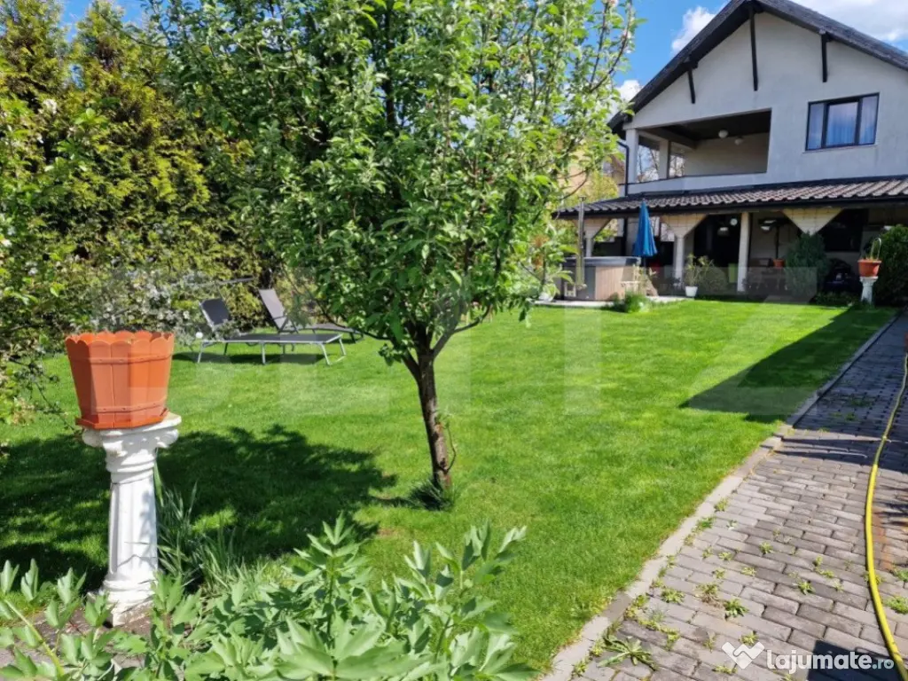Blitz propune spre vânzare o casă construită în 2015, situată în Târgu-Mureș, cartierul Unirii, potrivită pentru clinică, spații de birouri sau rezidențial pentru o familie numeroasă. Imobilul este realizat cu cărămidă Porotherm, planșee din beton armat, scară din beton finisată cu marmură și acoperiș cu țiglă Creaton lucioasă (Austria). Accesul se face prin poartă automatizată, iar terenul are 566 mp, amenajat. Suprafața utilă a casei este de 400 mp, la care se adaugă aprox. 40 mp de terase, compartimentate astfel: Parter Living generos cu șemineu Bucătărie + cămară Birou Baie Garaj Cameră tehnică Terasă cu jacuzzi cu apă sărată Etaj 3 dormitoare 2 băi 2 terase Dressing Mansardă Sală de fitness Saună Baie Terasă Dotări: izolație termică, geamuri termopan, sistem de alarmă, centrală termică pe gaz, racord la canalizare și apă. Casa se vinde mobilată și utilată. Proprietatea este potrivită pentru clinică, birouri sau locuință spațioasă. Pentru mai multe detalii și pentru vizionare, apelați cu încredere. Cod ofertă / ID BLITZ: P11423 Id intern: P11423 Număr niveluri imobil: 2 Număr Băi: 3 Nr. locuri parcare: 4