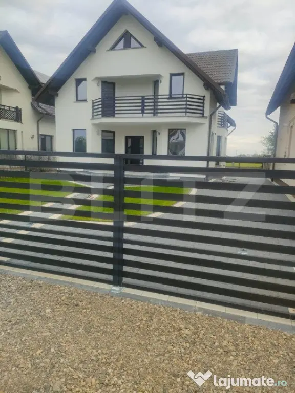 Curtea, pavată și cu gazon, este perfect întreținută și îți oferă spațiu suficient pentru a te relaxa în aer liber. Poarta de intrare automată completează tabloul unei proprietăți moderne și sigure.