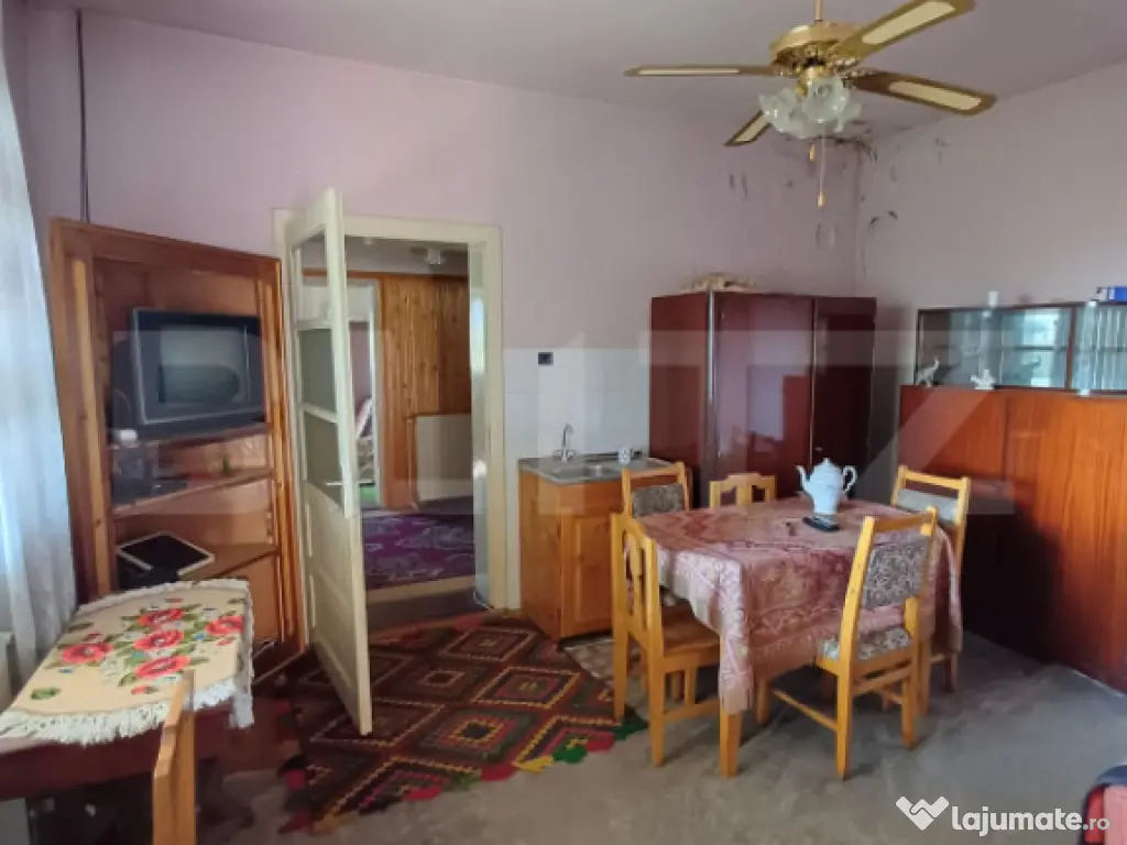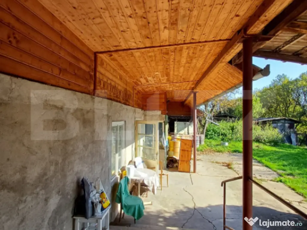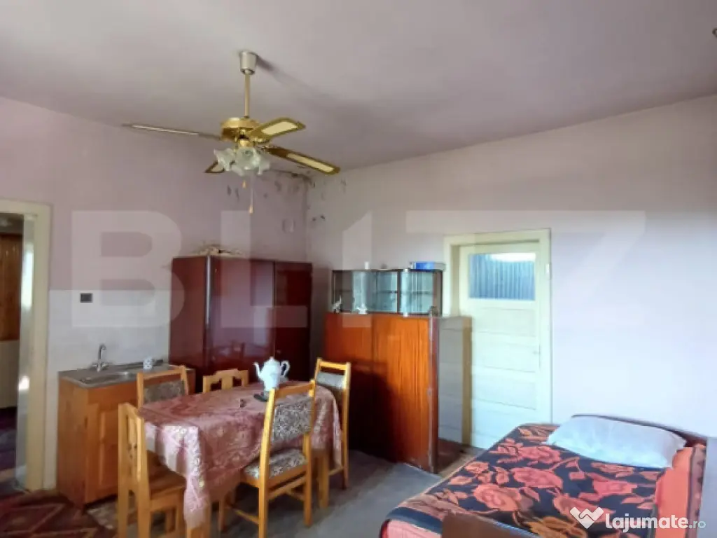 Blitz ofera spre vanzare o proprietate renovabila, impresiananta, cu 11508 mp teren intravilan in Copaceni. Proprietatea este compusa din doua proprietati distincte care pot fi achizitionate atat impreuna cat si separat. Prima proprietate este compusa din casa renovabila cu 8631 mp teren, iar cealalta din 2877 mp teren cu utilitati la front. Casa are o suprafata utila de circa 150 mp si este compusa din 2 corpuri distincte cu regim de inaltime D+P. Corp 1: demisol, cu intrare separata, format din camera tehnica si 2 incaperi utilizate ca atelier. Parterul este format din antreu, o incapere, bucatarie cu camara, hol, baie si 2 camere. Pod betonat, deschis, cu posibilitate de compartimentare, care se extinde pe toata suprafata casei. Geamuri din lemn, usi interioare din lemn, podea din lemn. Incalzirea se face cu centrala pe gaz, exista 6 focuri de gaz trase pe proprietate. Curent electric, apa, fosa septica. Terasa spatioasa, acoperita, placata cu lambriu, acoperis din tigla. Pe fundatie exista elemente decorative din marmura. Corp 2: hol cu urcare in pod, bucatarie si 1 camera. Anexe gospodaresti compuse din garaj, atelier cu groapa pentru reparat masini, magazie pentru unelte. Curtea este spatioasa, cu vita de vie, livada cu pomi fructiferi si teren agricol. Pentru a descoperi cum aceasta proprietate remarcabila poate deveni noua dumneavoastra casa sau o investitie profitabila, va invitam sa ne contactati. Nu pierdeti ocazia de a vizita si, eventual, de a achizitiona aceasta proprietare cu potential extraordinar! Cod ofertă / ID BLITZ: P156088 Id intern: P156088 Număr Băi: 1 Curent Apă Canalizare Gaz
