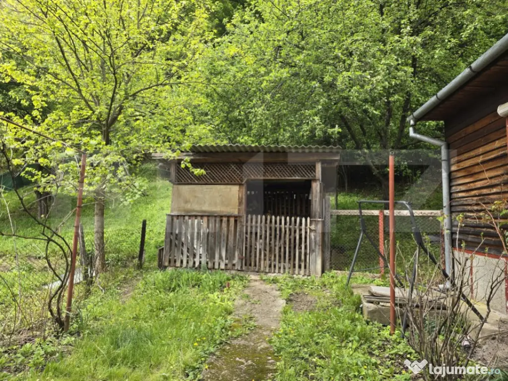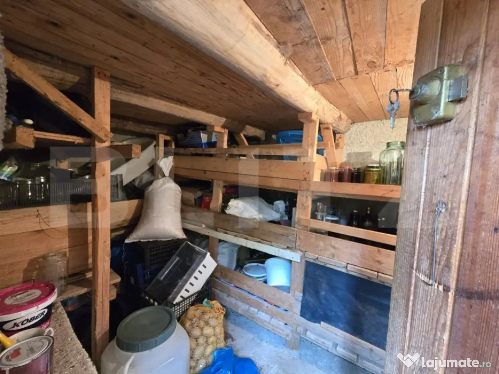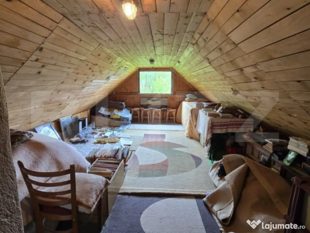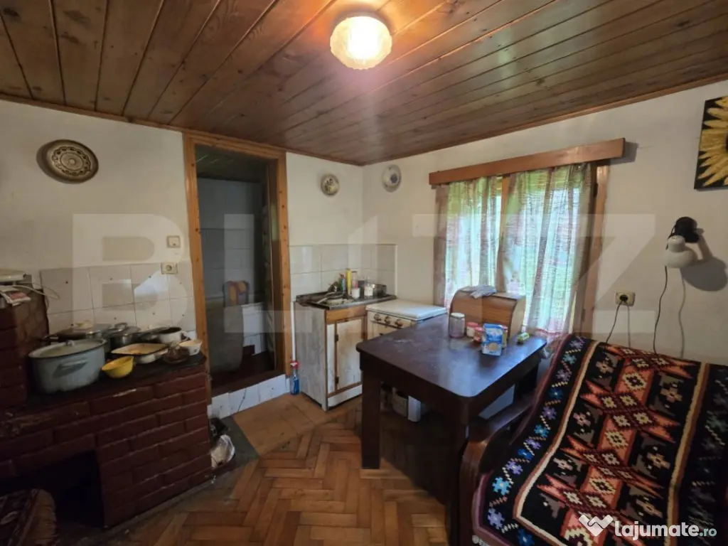 Blitz va propune spre vanzare o casa de vacanta construita din lemn pe fundatie de beton, planseu din lemn, acoperis tip sarpanta din lemn cu invelitoare din azbociment ondulat. Casa este construita pe un teren de 830 mp, intravilan, accesul se face de la drumul principal printr-un teren cu acces de servitute, cu posibilitate de acces la un drum neamenajat conectat la drumul principal. Casa are aproximativ 80mp, distribuiti astfel: pivnita la subsol, la parter: o terasa tip tarnat, 1 camera, 1 bucatarie, 1 hol si o baie. Din baie se face accesul la mansarda, unde avem o camera mare de aproximativ 30 mp. Casa necesita renovare. Pe proprietate mai regasim inca o casa de 16 mp construiti, in care avem un hol, 1 camera si un spatiu de depozitare. Utilitati: curent electric, apa, fosa septica. Incalzirea se face cu soba teracota pe lemne. Contactați-ne pentru mai multe detalii sau pentru a programa o vizionare! Cod ofertă / ID BLITZ: P145594 Id intern: P145594 Număr niveluri imobil: 1 Număr Băi: 1 Curent Apă
