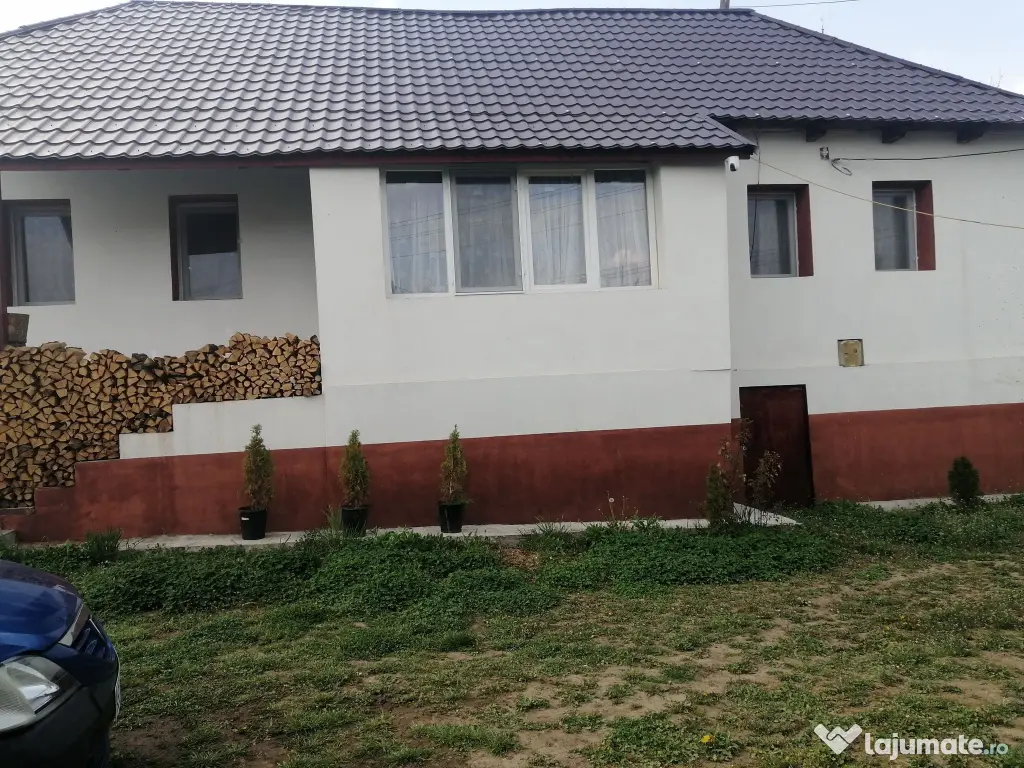 Este compusa din 3 camere mari, bucatarie, baie, hol, beci, veranda inchisa cu termopane; la suprafata utila adaugandu-se inca o magazie si bucatarie vara de 34mp. Accesul auto in curte se face direct din soseaua asfaltata si iluminata public, terenul casei fiind de 900mp cu front la asfalt de 34m. In curte sunt pomi fructiferi, arbusti si se poate amenaja o gradina de zarzavaturi.