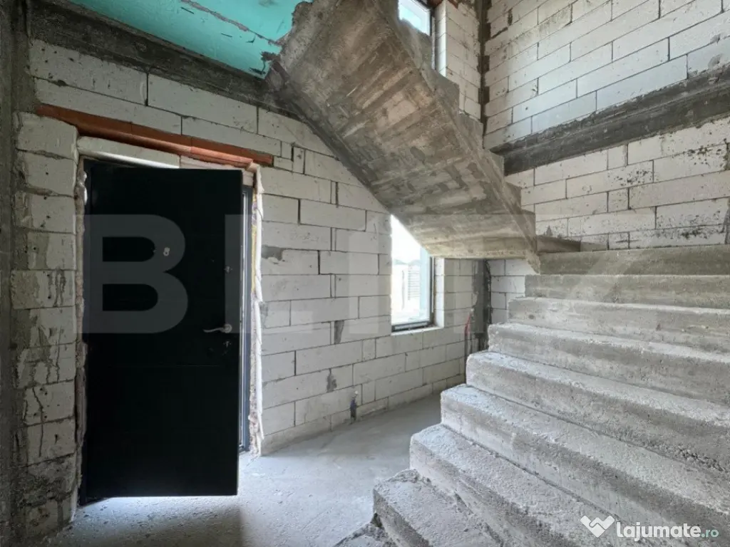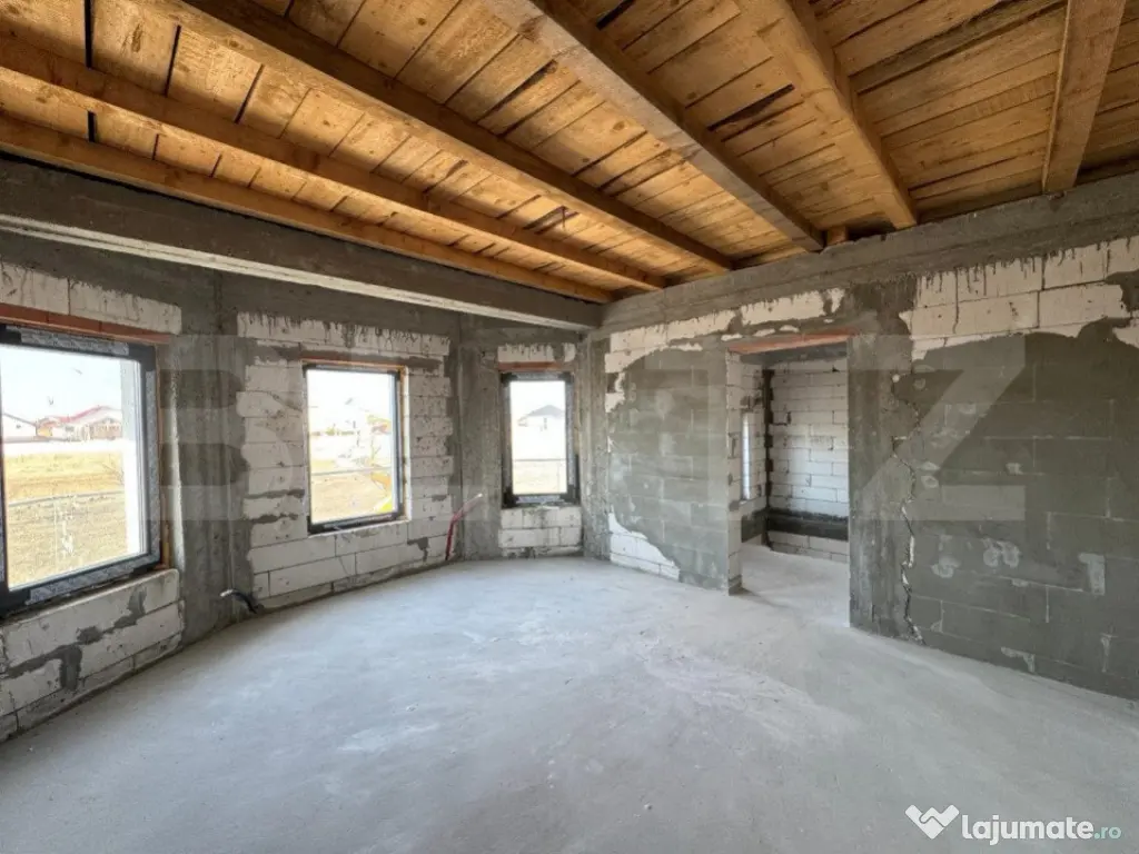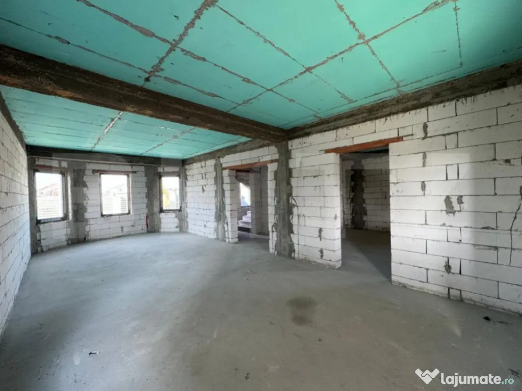 BLITZ propune spre vânzare o casă P + M, semi-finisată, de 131 mp utili și 204 mp construiți, aflată pe un teren de 339 mp, în Pielești, zona Magnolia. Casa face parte dintr-un proiect imobiliar împreună cu alte 3 tipuri de case pe două niveluri care sunt finisate la exterior, iar la interior sunt la roșu. Compartimentarea casei se prezintă în felul următor: - parter - hol, open space cu living și dining, bucătărie, baie, terasă - etaj - hol, 3 dormitoare, baie și balcon. Utilitățile de care dispune casa și care se găsesc la front sunt gazele naturale și curentul electric, la acestea se adaugă puțul forat și o fosă septică de mari dimensiuni, instalată în fața casei. Accesul se face foarte ușor din drum asfaltat, pe o alee privată de 12 m (10 m la care se adugă câte 1 m de-o parte și de alta a drumului pentru utilități). Curtea casei are o deschidere la alee de 16 m și este amenajată cu alei și platformă betonată pentru acces auto, gard și porți. La prețul afișat se adaugă TVA. Casa poate fi și finisată complet, deci livrată la cheie, la prețul afișat adăugându-se un cost orientativ de 25.000 euro, pentru finisaje interioare de nivel mediu. Cod ofertă / ID BLITZ: P100045 Id intern: P100045 Număr niveluri imobil: 1 Număr Băi: 2 Nr. locuri parcare: 2