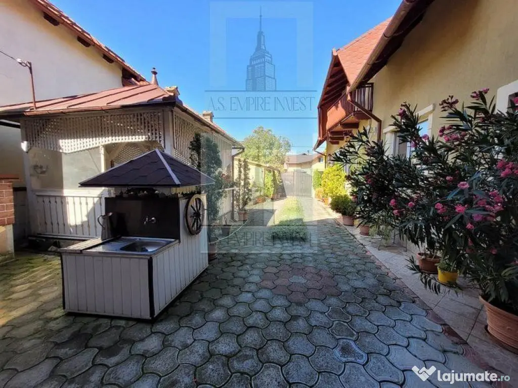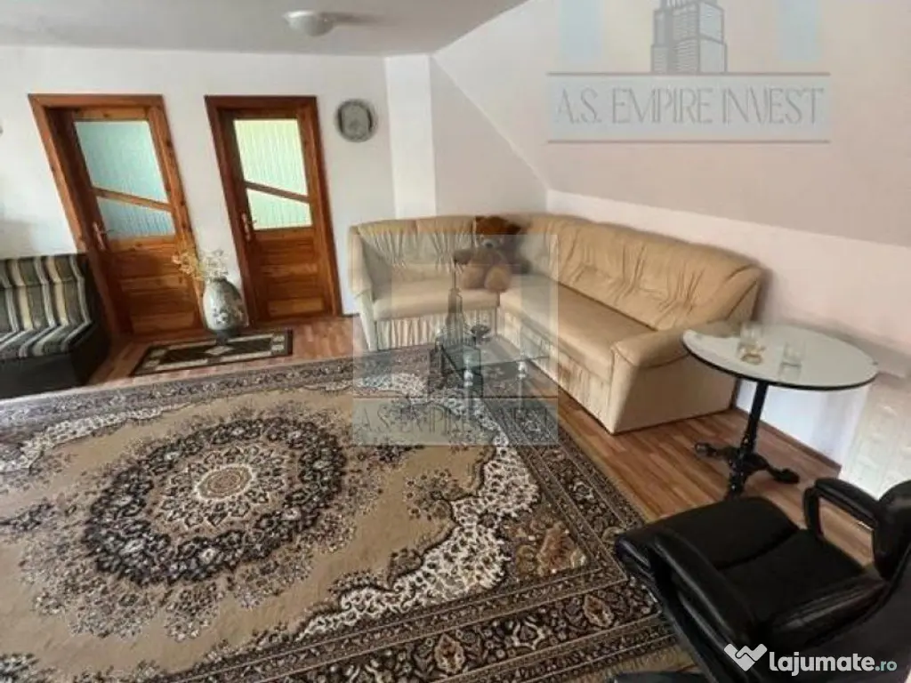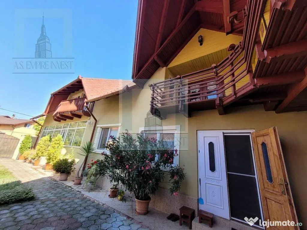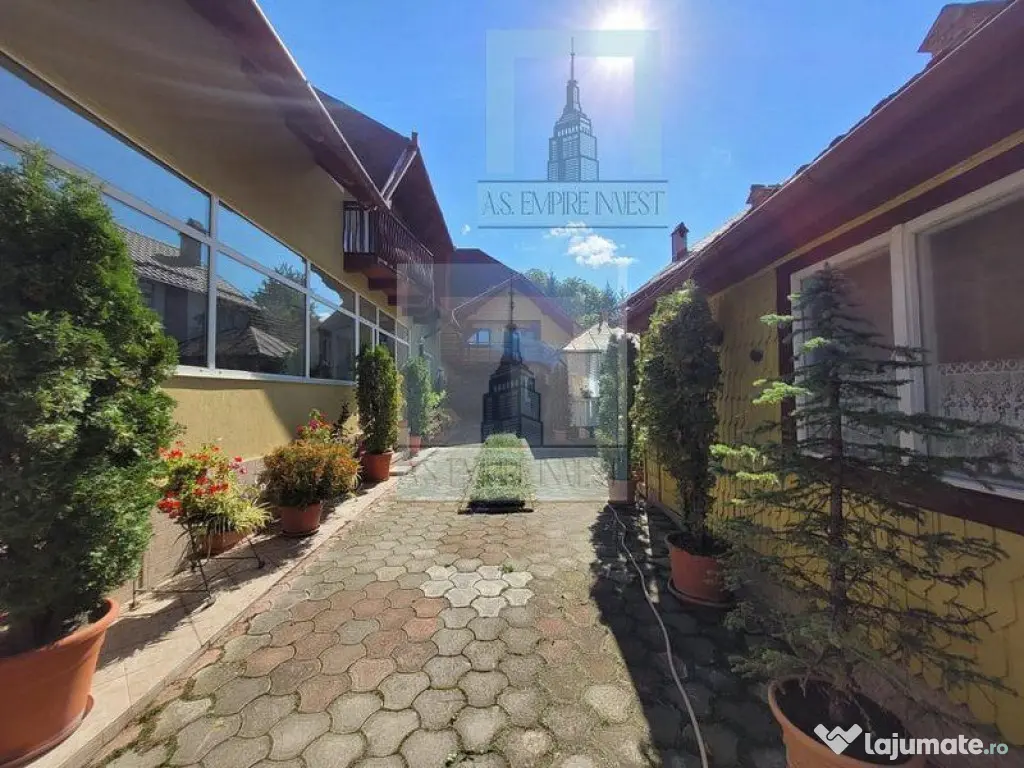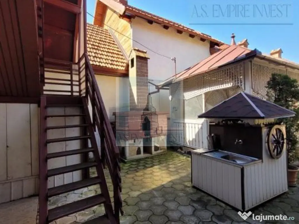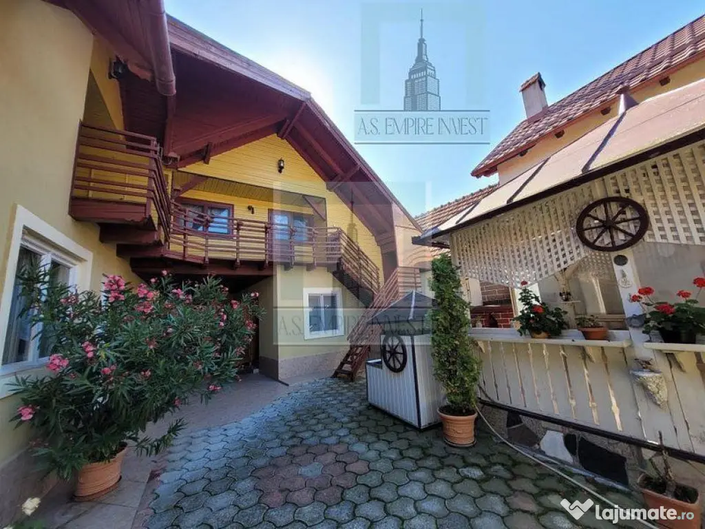AS EMPIRE INVEST va propune spre vanzare casa singur in curte, 11 camere, structura vagon in zona Tărlungeni. Imobilul este dispus pe parter şi mansardă şi are în componenţă: - parter (5 camere, bucătărie, 3 băi, piscină acoperită şi încălzită) - mansardă (6 camere, baie, 2 balcoane) Casa deţine saună, garaj, atelier, anexe, foişor, grătar şi are acces auto. 1000 mp teren, din care 350 mp este curtea liberă şi 350 mp grădină, toate utilităţile (centrală termică pe gaz). Se accepta plata prin credit ipotecar/cash. Pretul de vanzare este: 250.000 euro ID: 9058 Număr niveluri imobil: mai mult de 12 Număr Băi: mai mult de 3 Posibilitate parcare: Nu Curent Apă Canalizare Gaz Încălzire