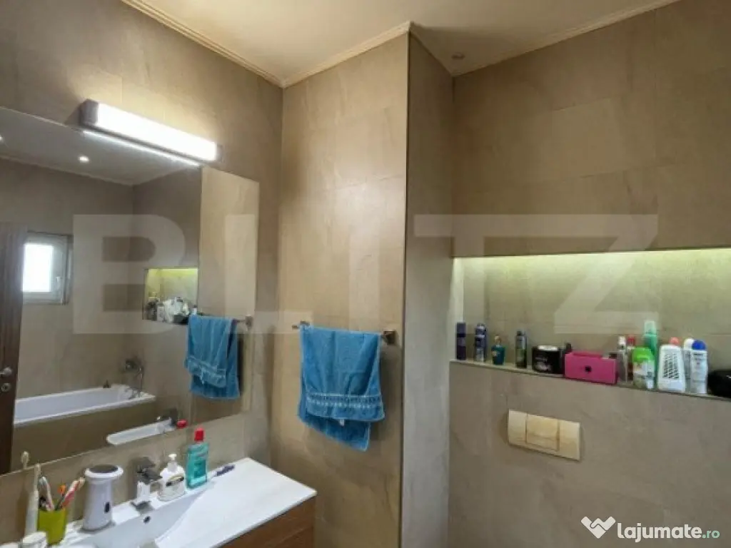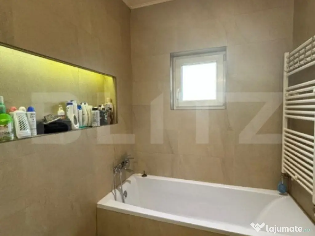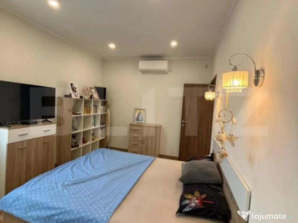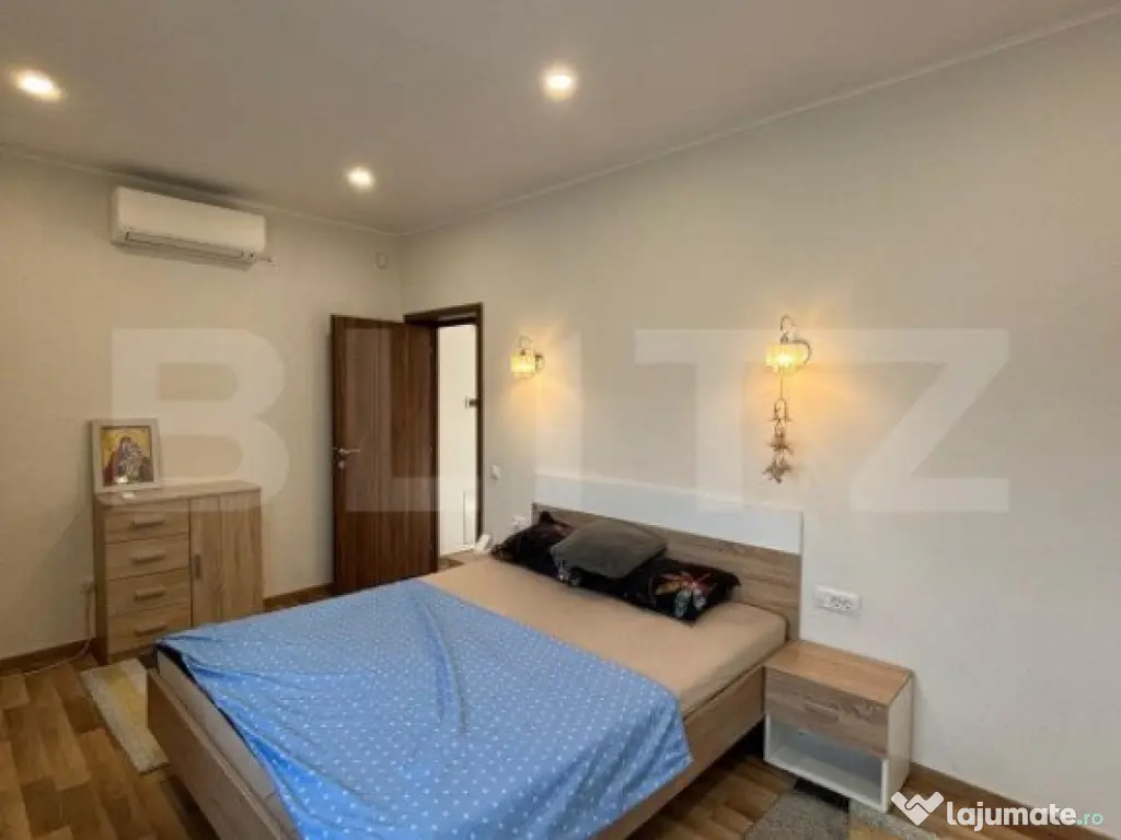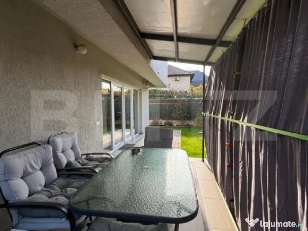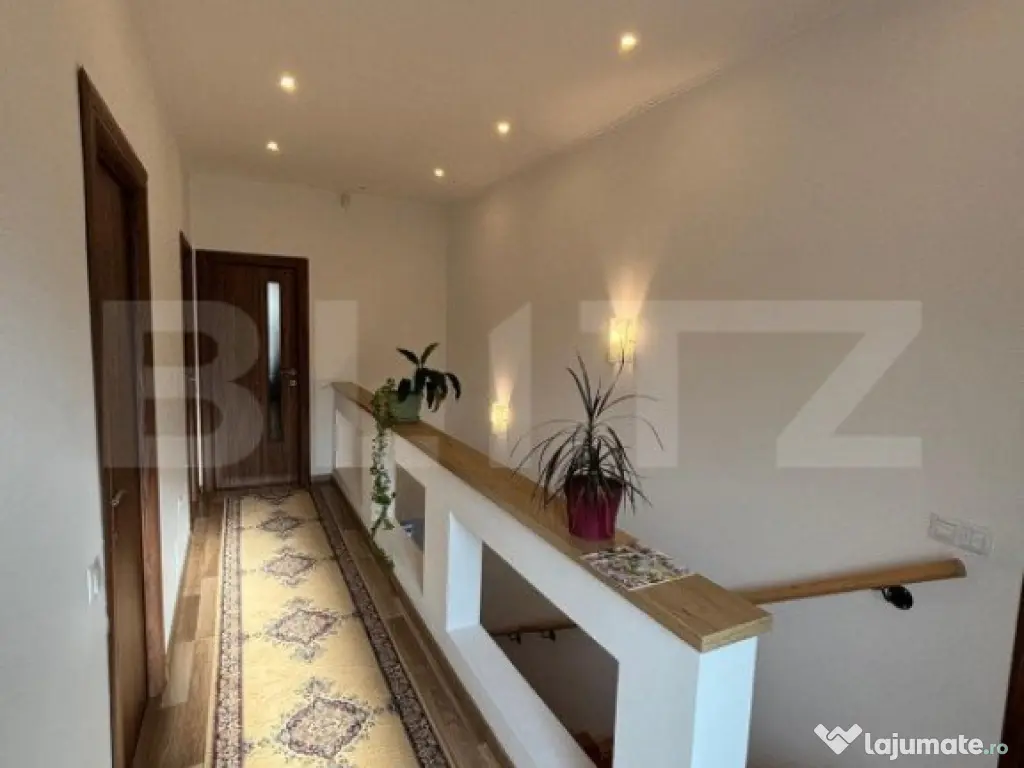 Blitz va propune spre vanzare o casa individuala, pe strada privata cu bariera, ceea ce ofera si mai multa siguranta. Compartimentarea acesteia este gandita astfel: . Parter: living, bucatarie deschisa insa separata de living, baie, si hol de intrare. Etaj: hol, dormitor matrimonial cu dressing si baie proprie, inca 2 dormitoare, cu inca o baie. Podul este izolat si poate fi utilizat ca si spatiu de depozitare. Proprietatea beneficiaza de o piscină exteriora cu sistem de incalzire cu panouri solare si lumini ambientale, ceea ce oferă o oportunitate minunată pentru relaxare și distracție în aer liber, si o zona pentru gratar. Terenul are o suprafață de 450 metri pătrați, oferind suficient spațiu pentru diferite activități, iar curtea este frumos amenajata cu pavaj, gazon si alte plante ornamentale, totodata va puteti relaxa si pe o terasa exterioara acoperita si ingradita cu perdele. In spatele casei mai este si un spatiu de depozitare util. Suprafața utilă a casei este de aprox. 150 metri pătrați, oferind suficient spațiu pentru locuire confortabilă. Datorită pozitionarii intr-o zona linistita rezidentiala cat și a piscinei, această proprietate este potrivită pentru familiile care doresc să se bucure de beneficiile unei case și a unei zone de recreere în aer liber. Pentru alte informatii, va stam cu drag la dispozitie! Cod ofertă / ID BLITZ: P135269 Id intern: P135269 Număr niveluri imobil: 1 Număr Băi: 3 Nr. locuri parcare: 1 Curent Apă Canalizare Gaz Sistem irigaţie Climă
