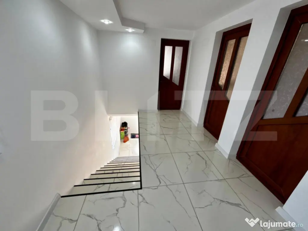 Blitz vă propune spre achiziție o casă individuală cu regim de înălțime S + P + 1, cu suprafață construită de 165 mp și utilă de 125 mp, amplasată pe un teren generos de 1175 mp, în localitatea Albești. Proprietatea beneficiază de acces facil, doar pe drumuri asfaltate, aflându-se într-o zonă populată și cu vecini de calitate. Imobilul este finisat complet la interior și se vinde mobilat și parțial utilat, exteriorul fiind în prezent nefinisat, ceea ce oferă viitorului proprietar posibilitatea de a-l personaliza după bunul plac. Compartimentarea este practică și bine organizată, toate încăperile fiind luminoase și cu acces din hol: • la parter regăsim un living spațios, un dormitor, bucătăria închisă și o baie; • etajul este format din două dormitoare generoase, o baie și un al treilea dormitor pentru copii/birou/dressing; • subsolul are un beci de 12 mp, ideal pentru depozitare; • podul este înalt, bine izolat, si poate fi amenajat ulterior ca mansardă (înălțime de 2,8 m la coamă). Încălzirea locuinței se realizează cu ajutorul a 4 aparate de aer condiționat și, datorită izolației foarte bune, confortul termic este asigurat și menținut eficient, iar costurile cu energia electrică rămân reduse. Proprietatea dispune de curent electric trifazic, fosă septică bine dimensionată, apă din puț forat și de la rețeaua locală, canalizarea se află la poartă, iar gazele sunt disponibile în zonă. Curtea din față este pavată și oferă spațiu pentru parcare sau activități în aer liber, iar în partea din spate se află o zonă verde, cu pomi fructiferi. Această zonă permite amenajarea unei grădini cu flori, unui loc pentru cultivat legume sau, pentru cei mai tineri, un spațiu de relaxare cu foișor și grătar. Aceasta este o proprietate ideală pentru o familie care își dorește spațiu, confort și o construcție solidă, într-o zonă cu acces facil și cu o bună conexiune cu punctele de interes din Craiova (10–15 minute cu mașina). De asemenea, proprietarul ia în considerare și posibilitatea unui schimb cu apartament în oraș, plus diferență. Pentru alte detalii suplimentare sau a vedea cum vi se potrivește proprietatea, vă așteptăm cu drag la vizionare. Cod ofertă / ID BLITZ: P166445 Id intern: P166445 Număr niveluri imobil: 1 Număr Băi: 2 Nr. locuri parcare: 2 Curent Apă Canalizare Climă