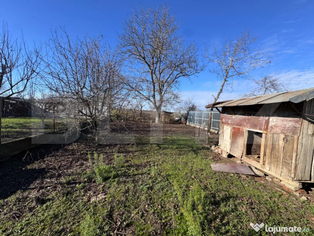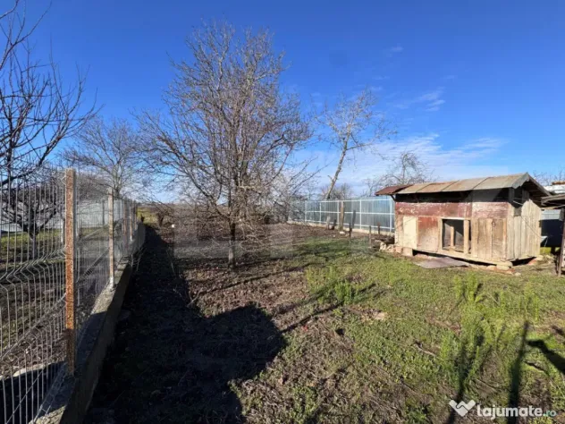 Terenul de 600 mp, cu o deschidere de 13 ml la drum, este configurat eficient. Această deschidere permite accesul auto facil, dar asigură și o curte privată, ușor de gestionat, fără a pierde timp prețios cu întreținerea unor spații inutile. În curte există fântână, o anexă pentru depozitare, iar utilitățile (gaz, apă) sunt la poartă (curentul este în casă). Canalizarea este în lucru în localitate.