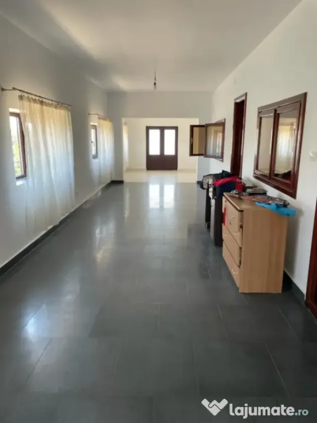 La interior, locuința dispune de o sală mare de living, bucătărie, 2 dormitoare și baie, fiind complet utilată și racordată la toate utilitățile: curent electric, apă și canalizare.