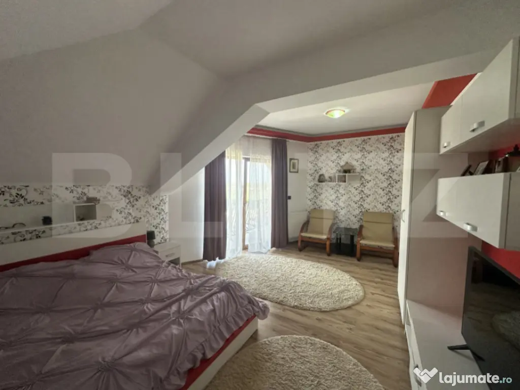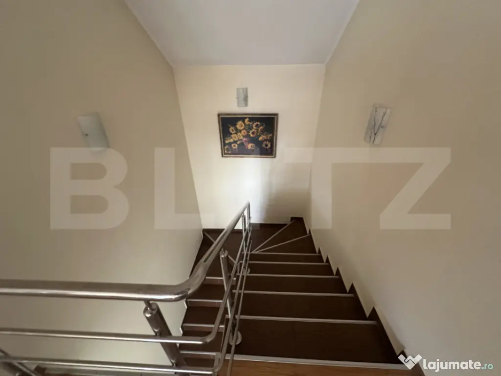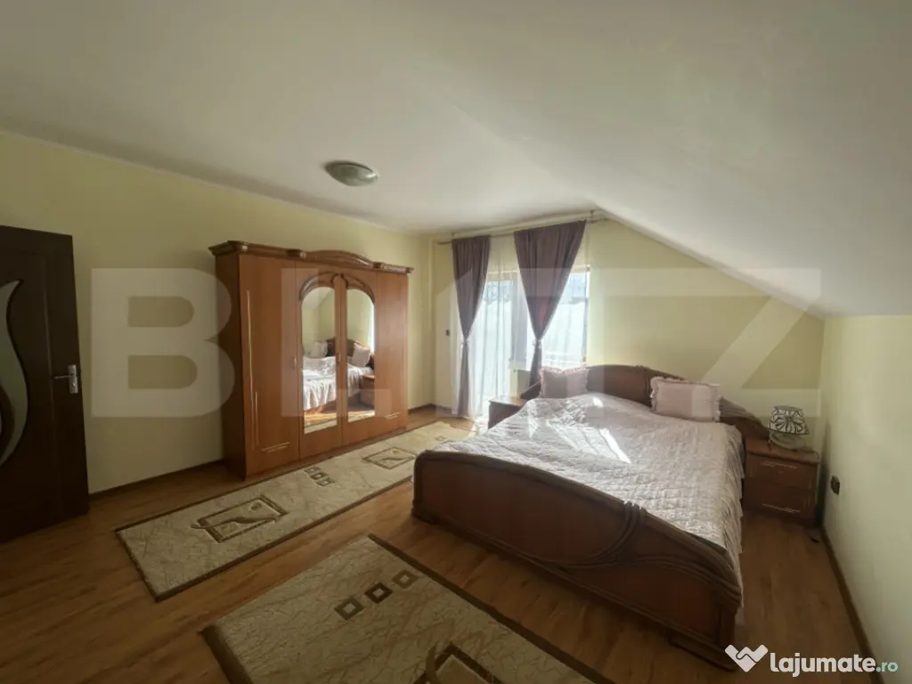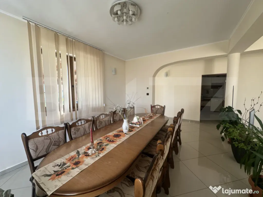 Casă spațioasă cu etaj, ideală pentru o familie care își dorește confort, liniște și un ambient plăcut. Imobilul are o suprafață construită la sol de 139,1 mp și o suprafață desfășurată generoasă de 353,3 mp, fiind amplasat pe un teren de 853 mp. Proprietatea include și o anexă tip garaj de 39 mp. Compartimentarea este practică și bine gândită: 4 camere luminoase, 3 băi, o bucătărie funcțională, 2 livinguri primitoare și o zonă de dining perfectă pentru momente petrecute în familie. Casa dispune și de subsol (beci), ideal pentru depozitare. La exterior, proprietatea oferă o terasă perfectă pentru relaxare, într-o zonă liniștită, ferită de agitația orașului. Terenul este îmbogățit cu pomi fructiferi, oferind un cadru natural plăcut și intimitate. O locuință completă, care îmbină spațiul generos cu confortul și liniștea. Cod ofertă / ID BLITZ: P169286 Id intern: P169286 Număr niveluri imobil: 1 Număr Băi: 3 Nr. locuri parcare: 1 Curent Apă Canalizare Gaz