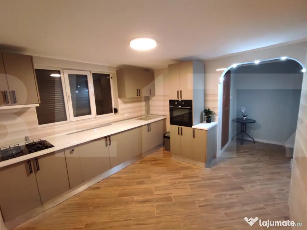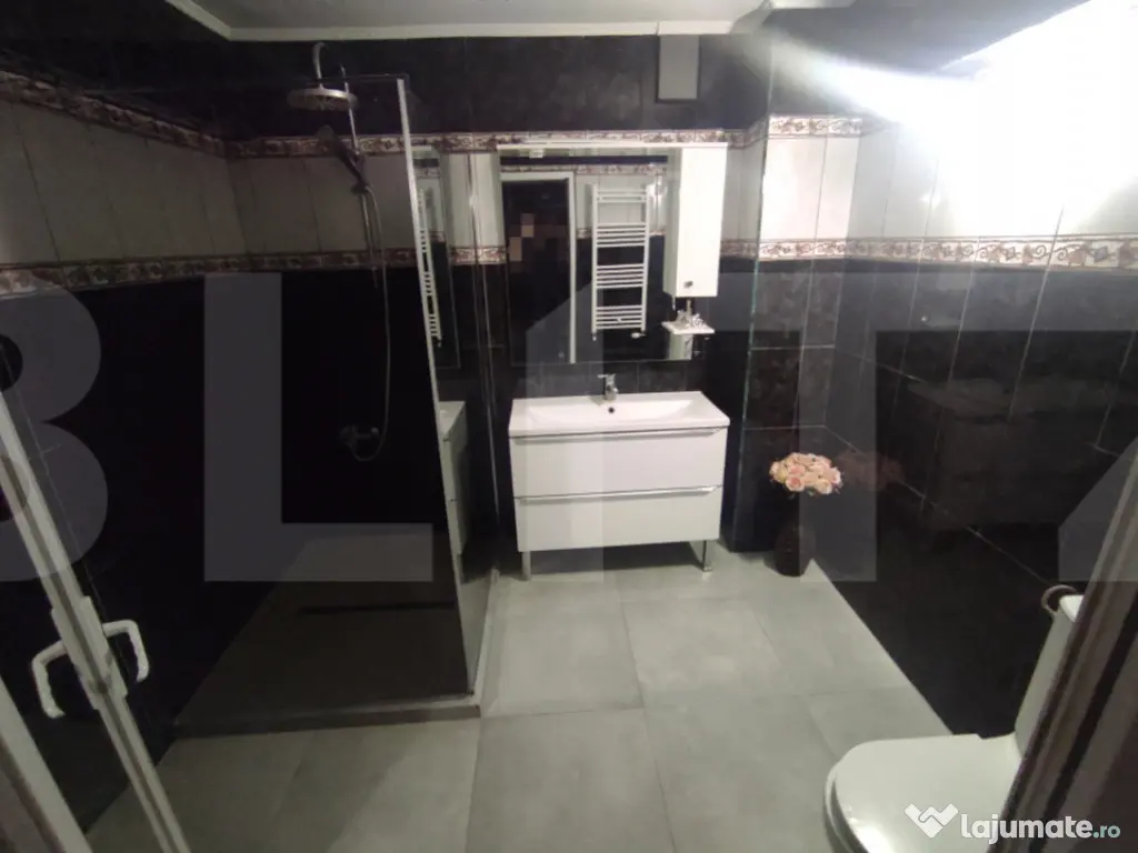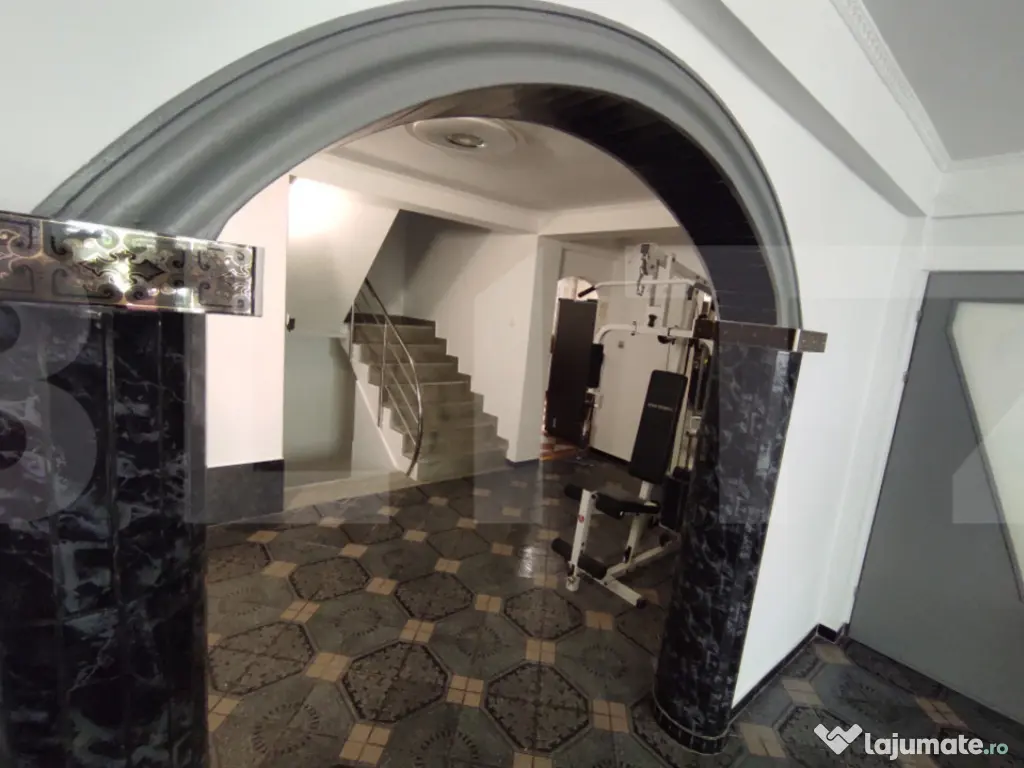 Punctul forte al proprietății este însă curtea. Cei 800 mp oferă un spațiu verde matur, cu pomi și zone decorative, care creează intimitate și senzația de refugiu urban. Piscina exterioară, foișorul și zona de barbeque transformă proprietatea într-un loc ideal pentru relaxare sau socializare. Parcarea se realizează în interiorul curții, în zona dedicată pentru două autoturisme, accesul fiind facilitat de poarta automatizată.