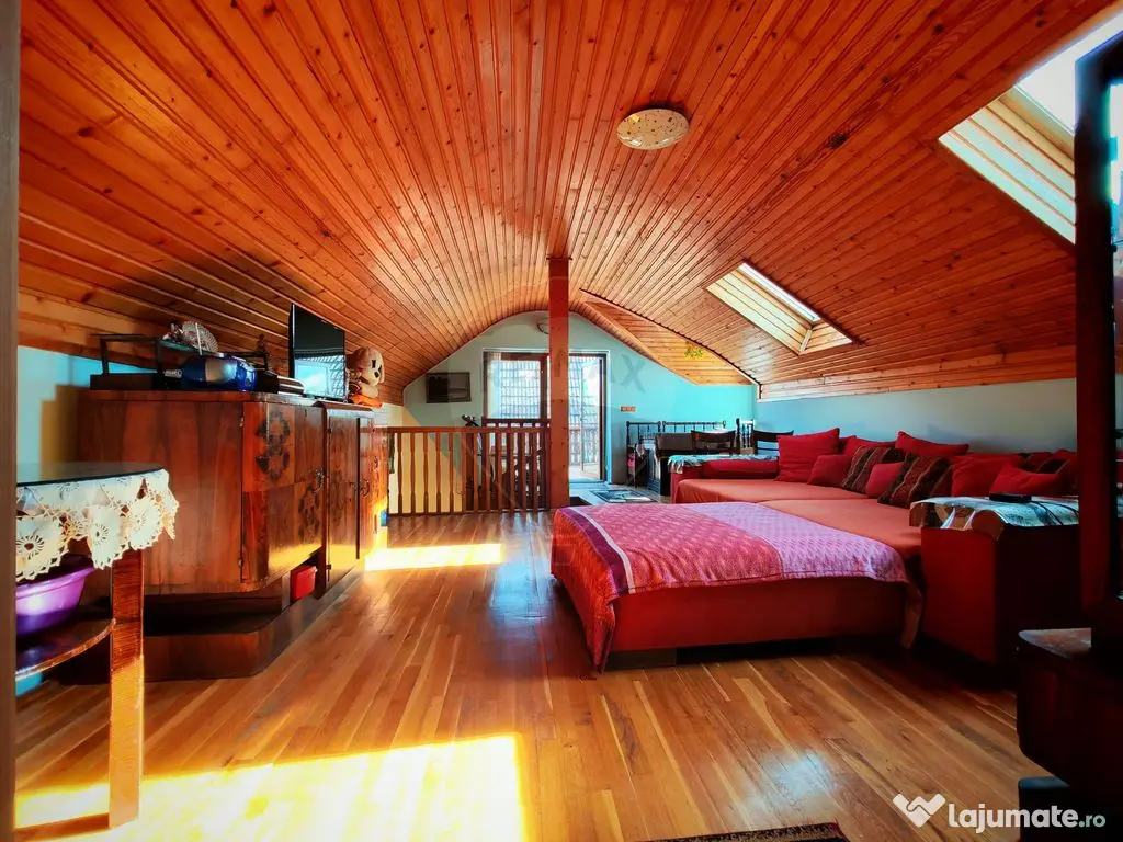 La subsol se afla o garsoniera complet functionala, cu intrare separata, care a fost in trecut inchiriata. Aceasta reprezinta o oportunitate excelenta pentru venit pasiv sau pentru locuinta separata destinata oaspetilor / membrilor familiei.