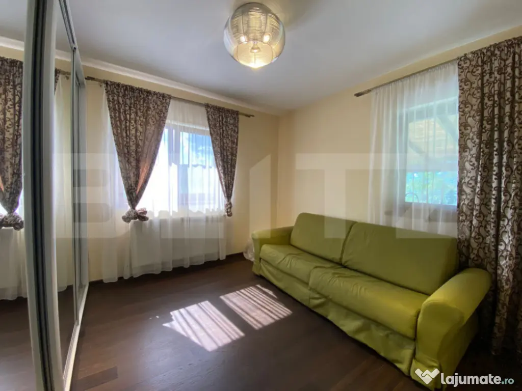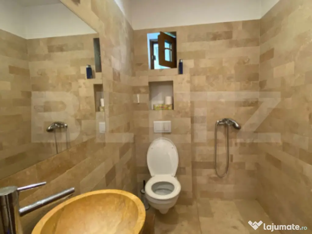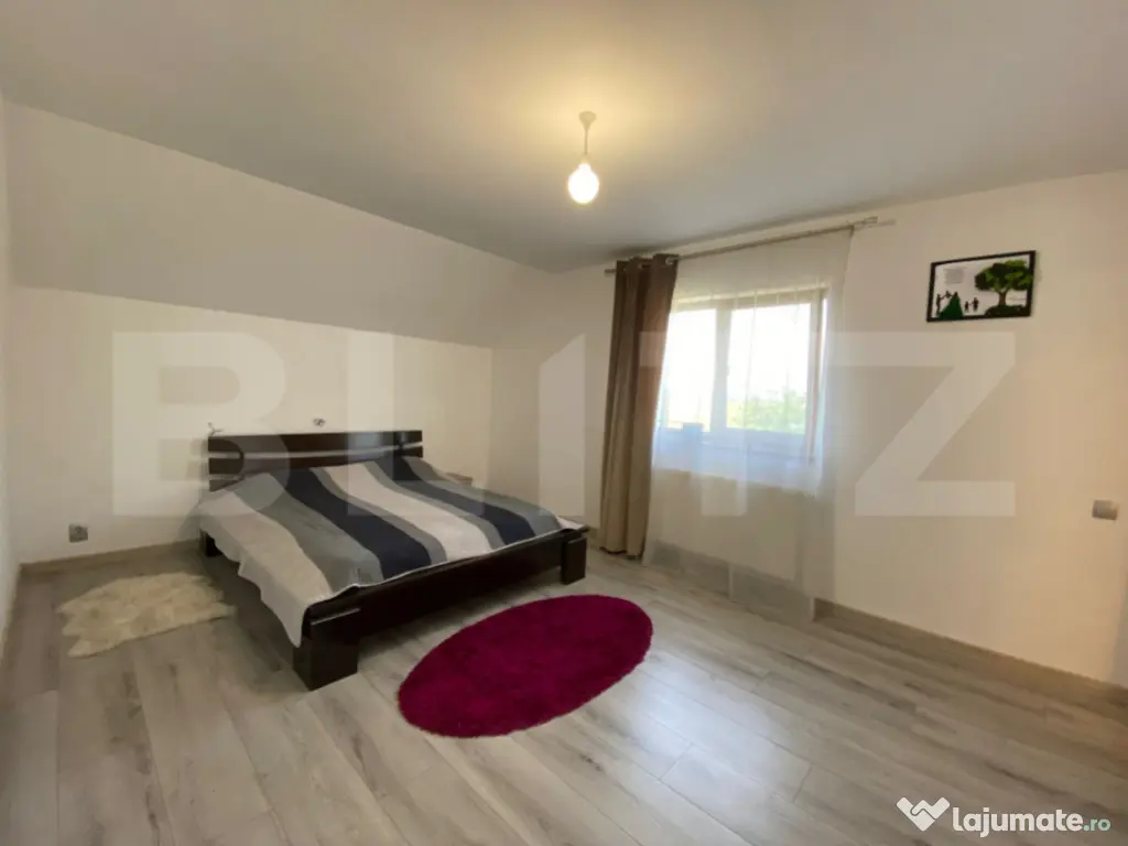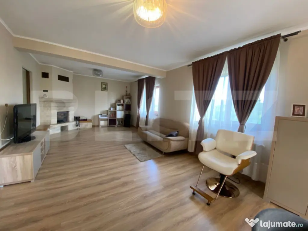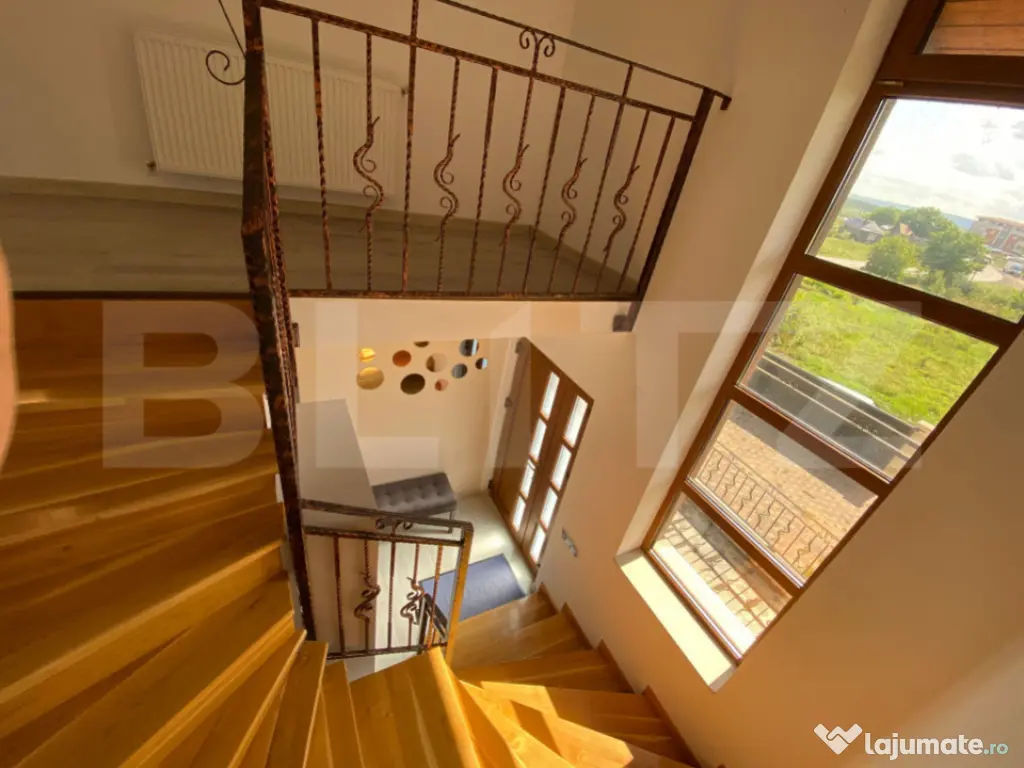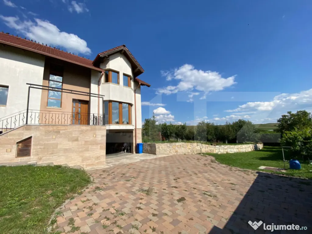 Blitz vă propune spre vânzare o casă deosebită, construită cu atenție la detalii și confort, situată într-o zonă liniștită și bine conectată la oraș. Proprietatea are o suprafață utilă de 260 mp, desfășurată pe Demisol + Parter + Etaj, pe un teren generos de 1600 mp cu front de 60 m la stradă asfaltată și iluminată public. Compartimentare: -Demisol: garaj pentru două mașini, două spații de depozitare, baie. -Parter: living de 40 mp, bucătărie separată, cameră, baie, hol, terasă de 30 mp. -Etaj: 3 dormitoare, 2 băi, dressing. Dotări: -Încălzire prin centrală pe gaz (nouă), completată de un șemineu funcțional. -Izolație cu polistiren EPS 100 de 15 cm și tâmplărie de calitate superioară. -Garaj dublu cu poartă automatizată și sistem de supraveghere video. -Terasă de 40 mp cu priveliști deschise. -Curte amenajată, cu livadă și grădină de legume. Casa este optimizată din punct de vedere termic și poate fi utilizată atât ca locuință familială, cât și pentru destinații comerciale, fiind deja demarate proceduri în acest sens (birouri, cabinete, pensiune, spațiu de joacă sau alte activități). Vă invităm la o vizionare pentru a descoperi toate avantajele pe care această proprietate le oferă. Cod ofertă / ID BLITZ: P151639 Id intern: P151639 Număr niveluri imobil: 1 Număr Băi: 4 Curent Apă Canalizare Gaz