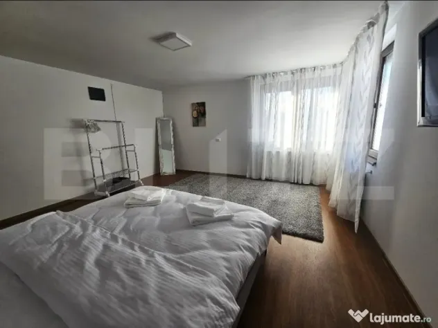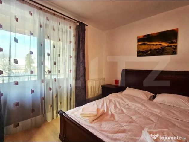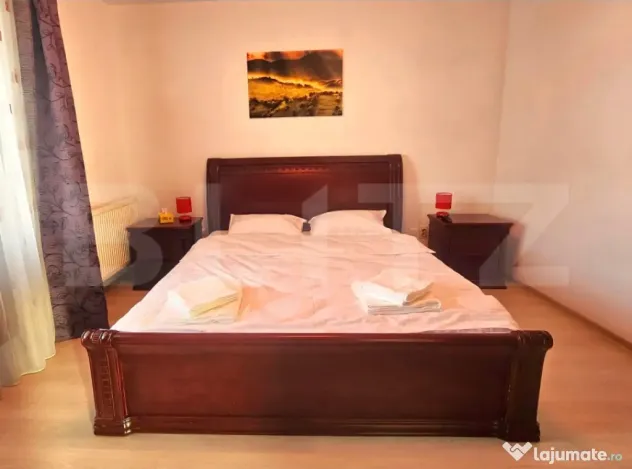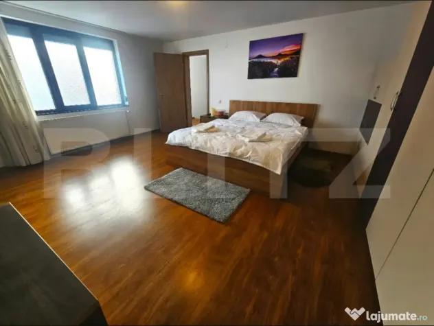 Imobilul oferă 5 camere, dintre care 4 dormitoare luminoase (3 matrimoniale, unul cu balcon), un living generos cu bucătărie open space, fiecare cameră fiind dotată cu propriul televizor. Dispune de 3 băi moderne, dintre care una este echipată cu saună și cadă jacuzzi.