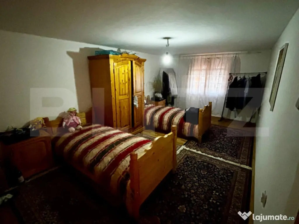 Blitz vă propune spre achiziție o casă individuală cu regim de înălțime S+P+M, cu suprafață construită de 220 mp și suprafață utilă de 163 mp, construită în anul 2002 în regie proprie, pentru uz personal, situată într-o zonă liniștită de case, foarte aproape de strada Toamnei, cu acces doar pe străzi asfaltate. Locuința este construită din BCA, cu placă de beton peste parter, ceea ce îi oferă soliditate și durabilitate. La subsol se află un garaj destinat parcării autoturismului, care poate fi utilizat și ca spațiu de depozitare. Tot aici există și o pivniță subterană unde poate fi amenajată o cramă, ideală pentru depozitarea vinurilor sau a alimentelor. Compartimentarea este practică și bine organizată. Parterul dispune de un hol de acces generos care face legătura cu livingul, acesta având ieșire directă către grădina din spatele casei. La același nivel se află bucătăria închisă, un dormitor, o baie și un birou de dimensiuni mai mici, amplasat chiar lângă intrarea în locuință. La etaj se găsesc două dormitoare spațioase, un birou, o baie și o cameră rămasă neamenajată, care poate fi configurată în funcție de nevoile viitorului proprietar. Din holul etajului există acces către balcon. Casa beneficiază de toate utilitățile: gaz, curent electric, apă și canalizare, iar confortul termic este asigurat de centrală termică pe gaz. Construcția este izolată cu polistiren de 10 cm, iar acoperișul este din țiglă. În spatele casei se află o curte de aproximativ 250 mp, amenajată pentru relaxare, cu foișor și grătar zidit, spațiu ideal pentru petrecerea timpului liber alături de familie și prieteni. Proprietatea se vinde mobilată și utilată, exact așa cum se prezintă în fotografii, fiind pregătită pentru a fi locuită imediat. Accesul către imobil se face doar pe străzi asfaltate, iar în apropiere se află magazine non-stop și stație de autobuz/taxi, oferind acces facil către oraș. Pentru alte detalii și informații suplimentare, vă așteptăm la vizionare. Cod ofertă / ID BLITZ: P166215 Id intern: P166215 Număr niveluri imobil: 1 Număr Băi: 2 Curent Apă Canalizare Gaz Climă